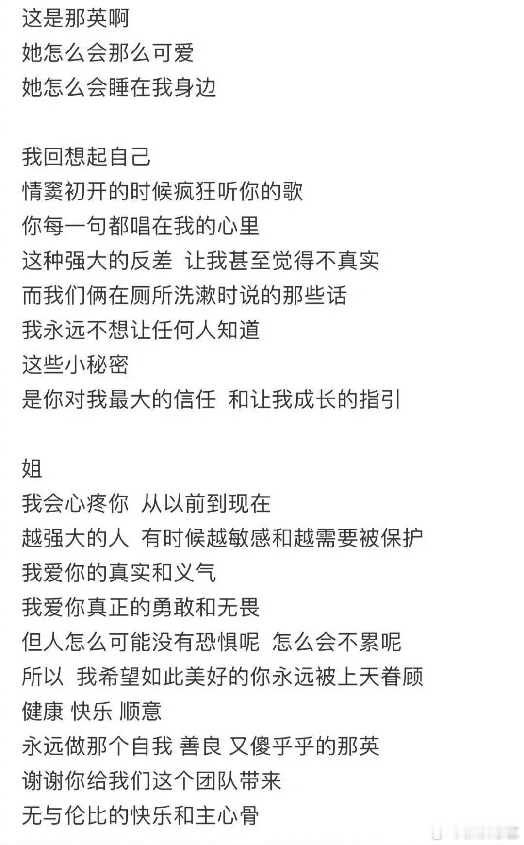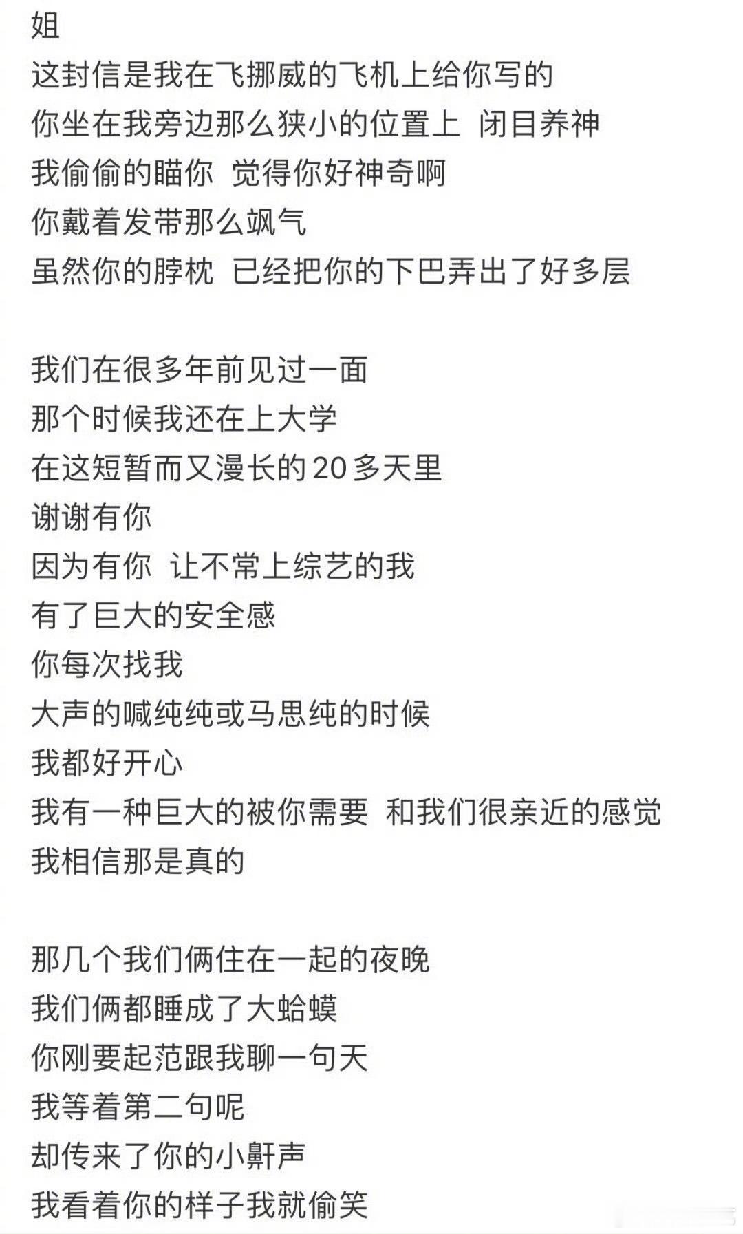 马思纯那英 纸短情长 的信,真的把“纸短情长”这个词变得具象化了。从大学时期的仰望,到如今旅途中的如此的亲密无间,她用一封手写信告诉纸短情长,大概就是这个模样吧!看得人忍不住泪目了…花儿与少年