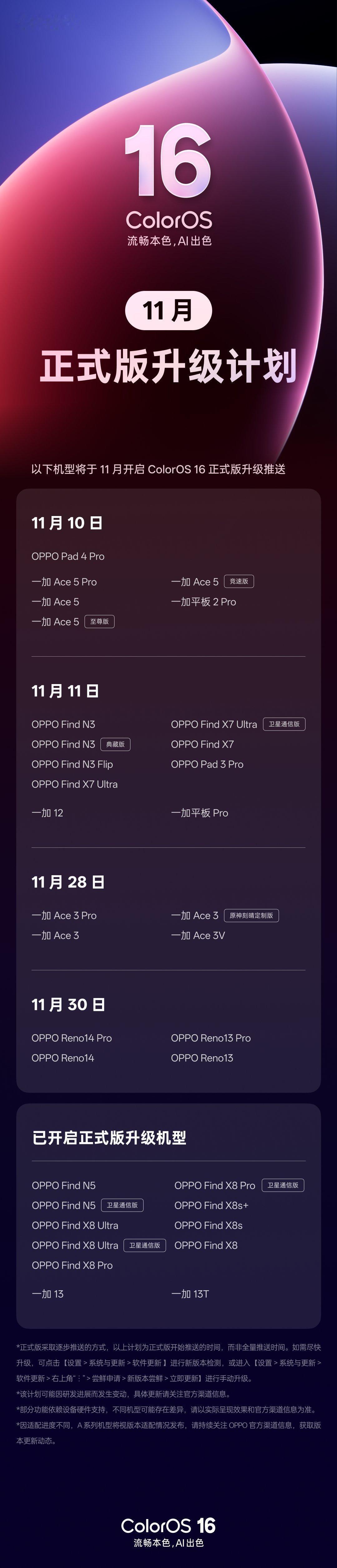 数码闲聊站[超话] ColorOS 16 11月正式版升级计划!