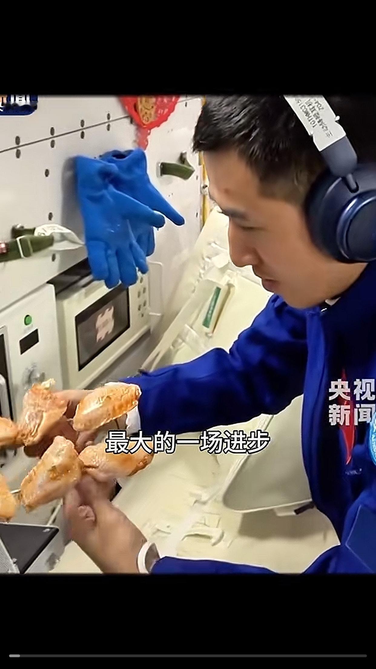 不得不佩服 咱中国人琢磨吃饭这事儿,都琢磨到到太空上去了! 中国空间站内,一场“太空烧烤”正上演。 神舟二十号航天员王杰地从密封袋中取出腌制好的奥尔良鸡翅,酱料均匀,泛着诱人光泽。他将鸡翅串上特制金属签,稳稳卡进烤箱凹槽。一旁,神舟二十一号航天员武飞设定28分钟、180℃,烤箱启动,红热管映照着专注神情。 “叮!”提示音响起,金黄焦脆的鸡翅“飘”出。指令长陈冬用镊子夹起,轻吹后咬下,外皮“咔嚓”脆响,肉汁四溢,他赞道:“香!”三人还共享了黑椒牛排,切块“飘”向嘴边,欢声笑语中,空间站满是家的温暖。 当俄罗斯美国宇航员在太空啃着像牙膏似的压缩食物,寡淡无味还难以下咽,咱中国航天员可倒好,直接在太空搞起了“种菜烧烤”一条龙。 从古时神农尝百草教人耕种,到如今在太空培育蔬菜、烤出香喷喷的鸡翅,这是中国人对“民以食为天”最极致的传承! 别人还在为填饱肚子发愁,咱已经在太空追求美味与健康了,不禁感叹中国航天好样的! 航天员分享