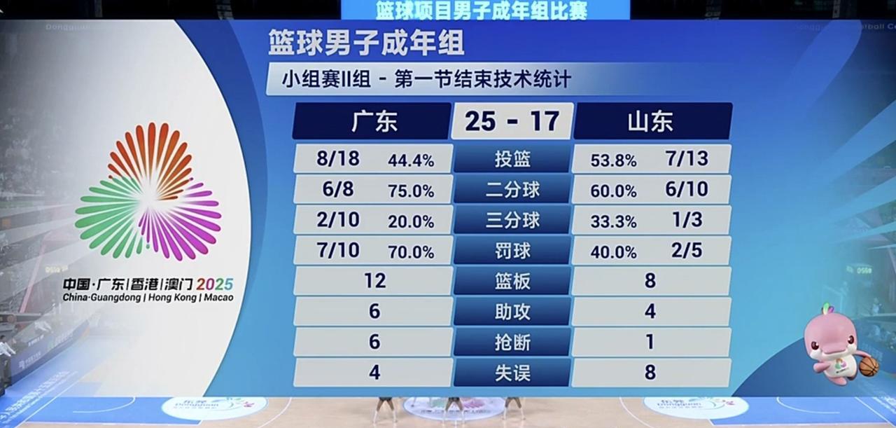 全运会男篮,广东首节逼出山东8次失误,但是自身命中率惨淡!北京时间2025年11