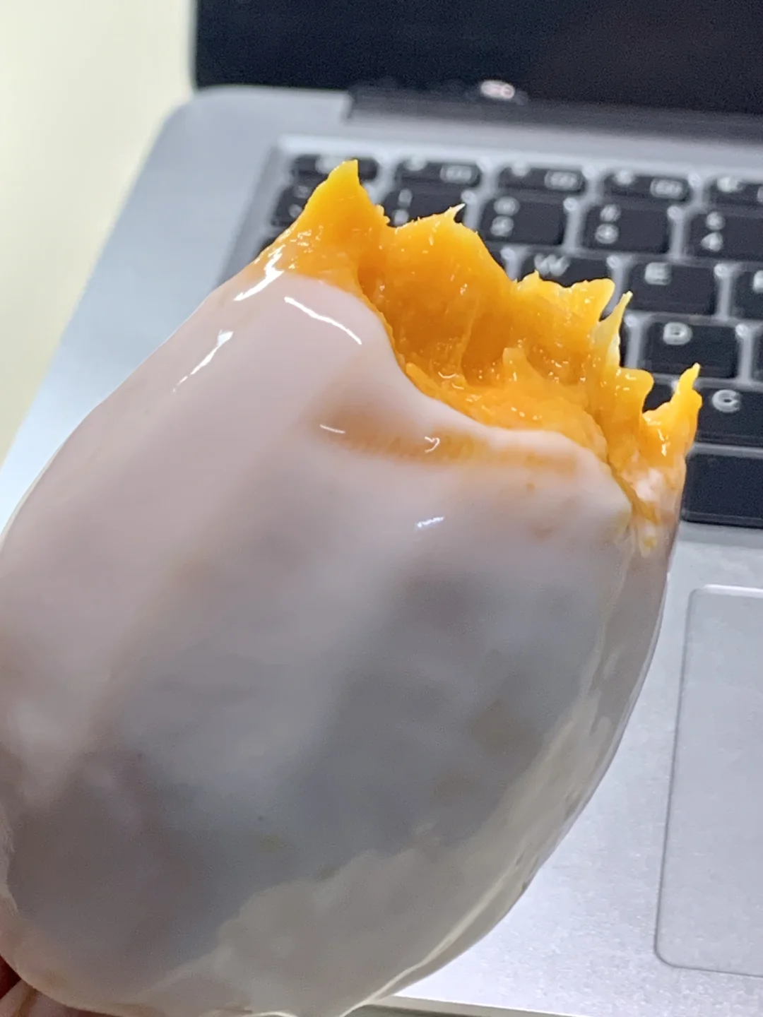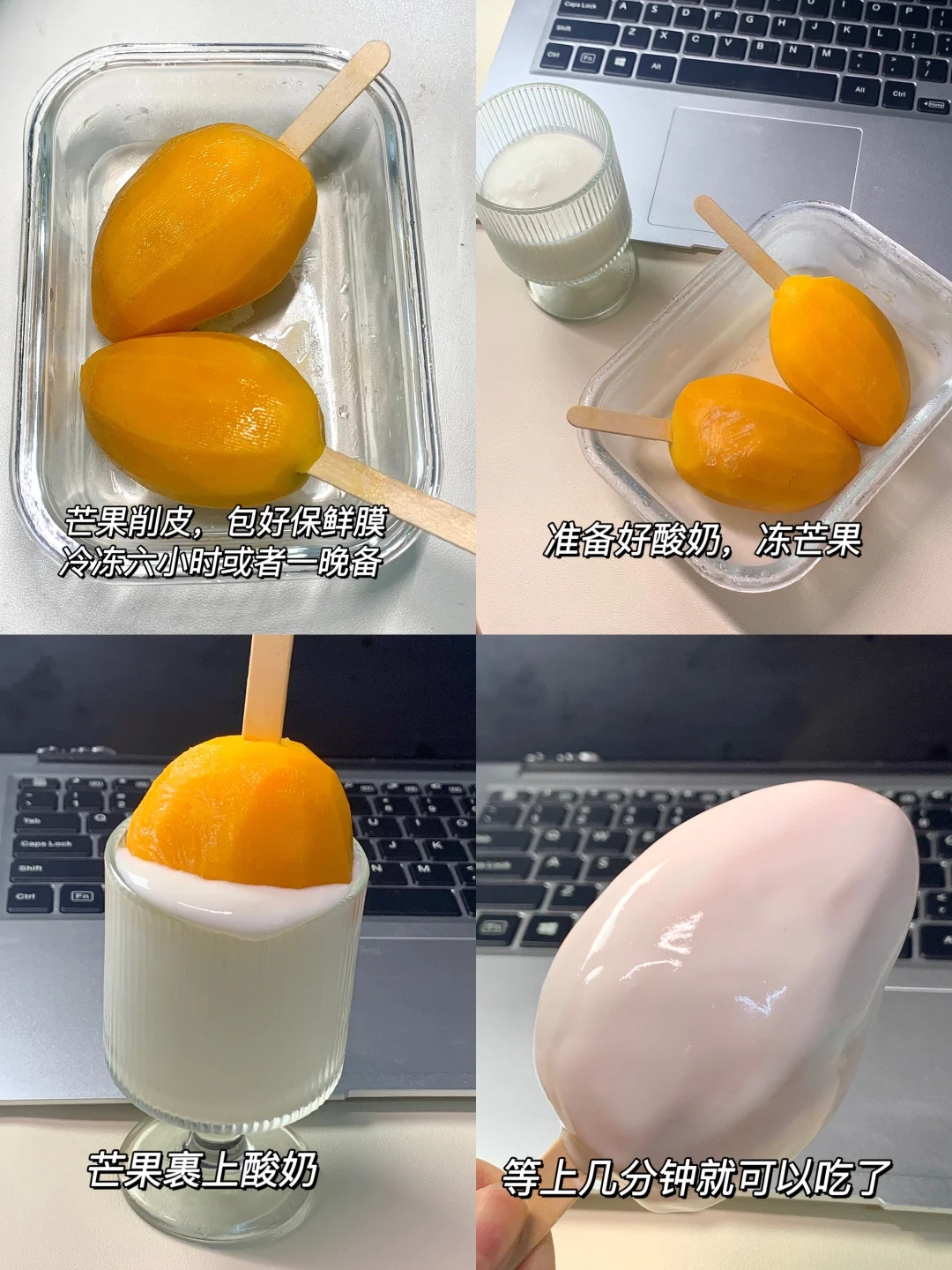 冻芒果+酸奶的简易版芒果冰淇淋!没想到还挺好吃的!甜甜丝滑的口感,直接啃个精光!太绝了!