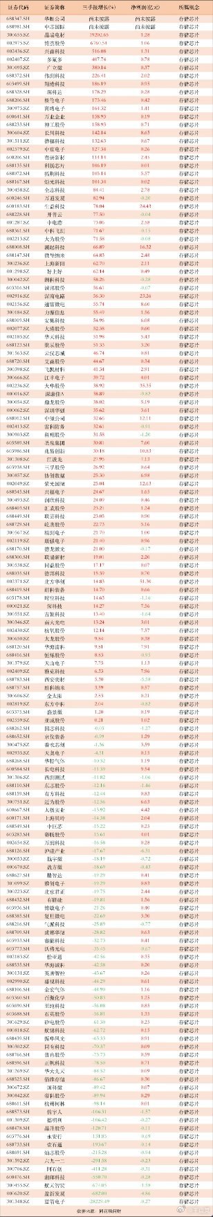 截至目前,两市存储芯片相关的公司,如下。
