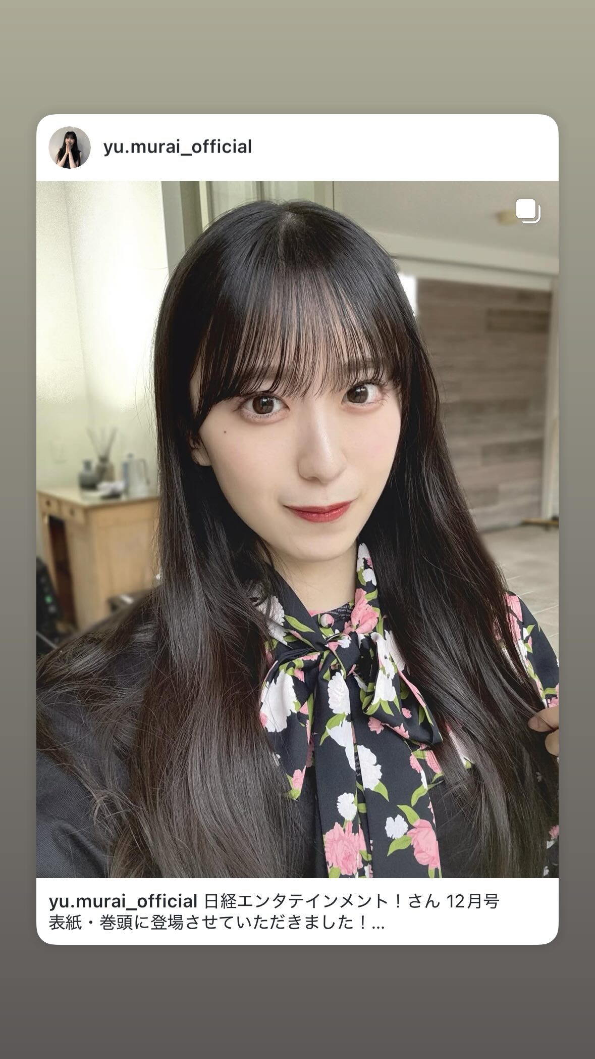 村井優「日経エンタテインメント!さん12月号、表紙・巻頭に登場させていただきました!ぜひ( . .).·*.」