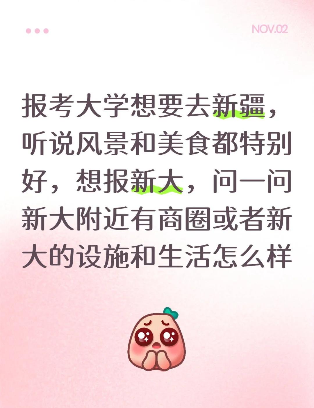 报考大学想要去新疆,听说风景和美食都特别好,想报新大,问一问新大附近有商圈或者新大的设施和生活怎么样报考 新疆