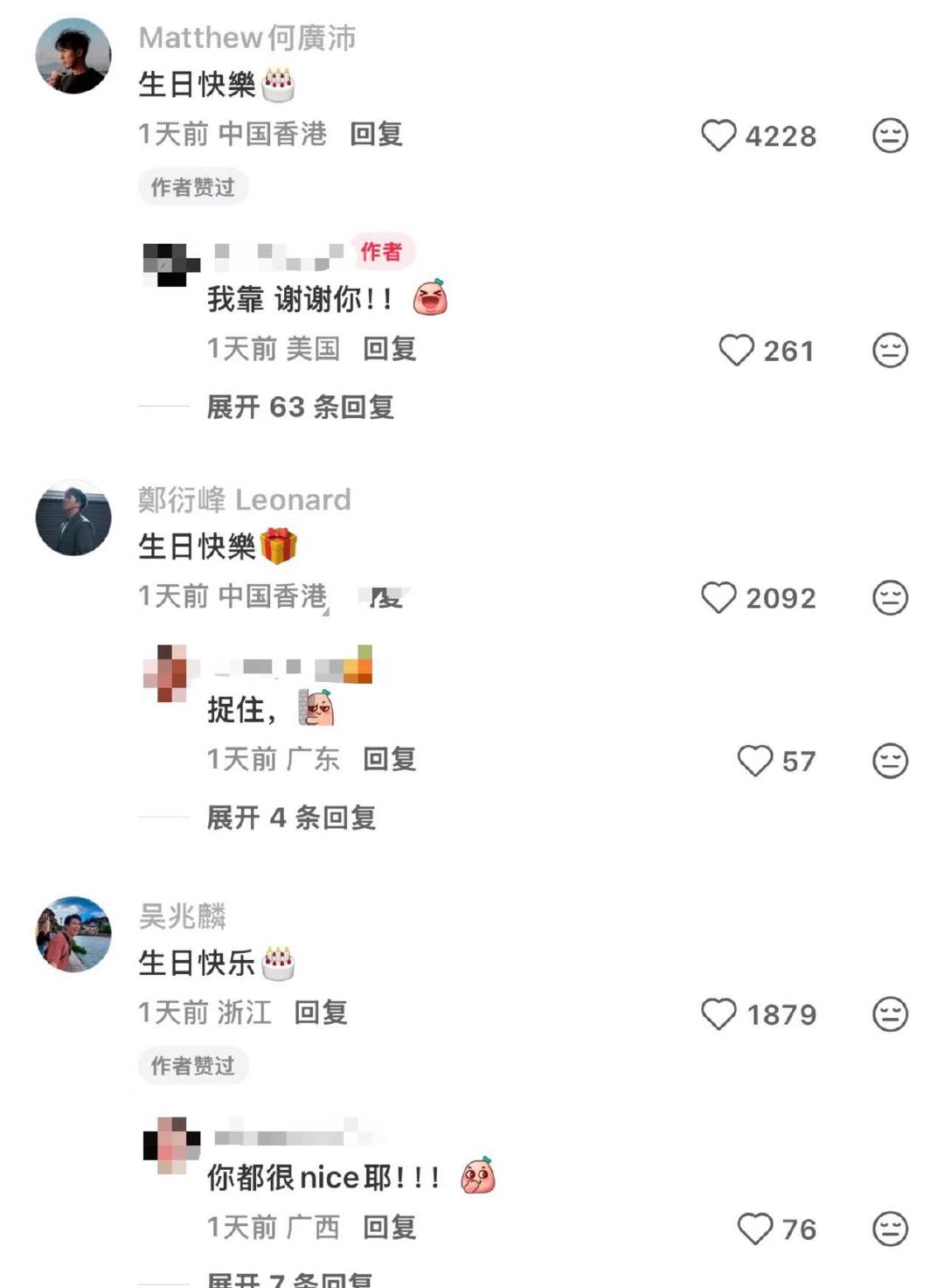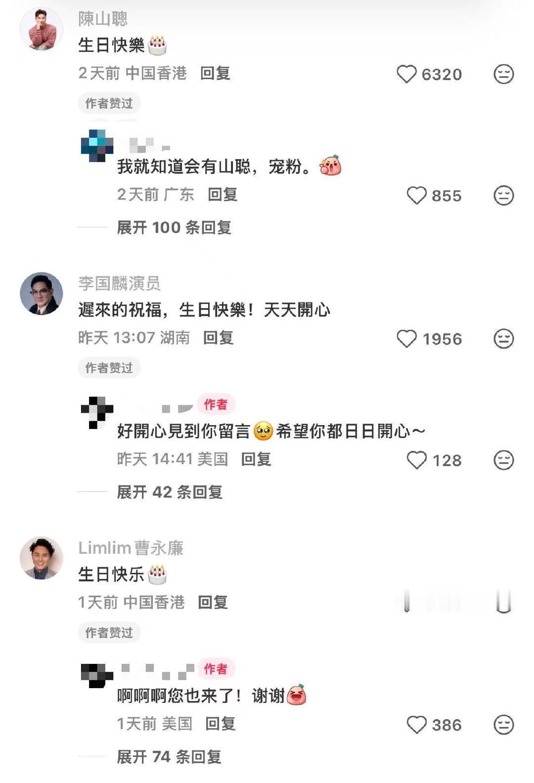 剧粉收到tvb演员生日祝福在社交平台留言后收到tvb演员的祝福 近日,有网友在社交平台许生日愿望,希望收到tvb演员的生日祝福,没想到真的实现了!有陈山聪、曹永廉、李国麟、何广沛、郑衍峰、吴兆麟,网友:“喜欢的演员能看到已经是最好的生日礼物啦~”