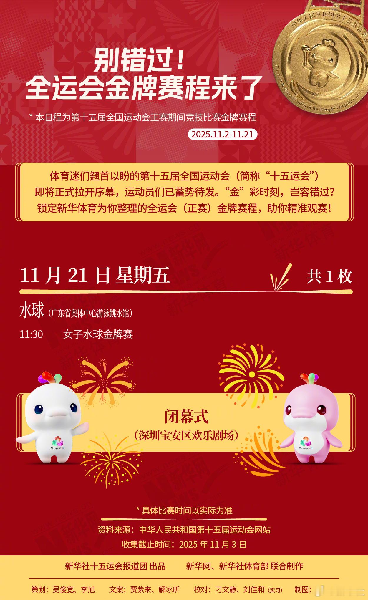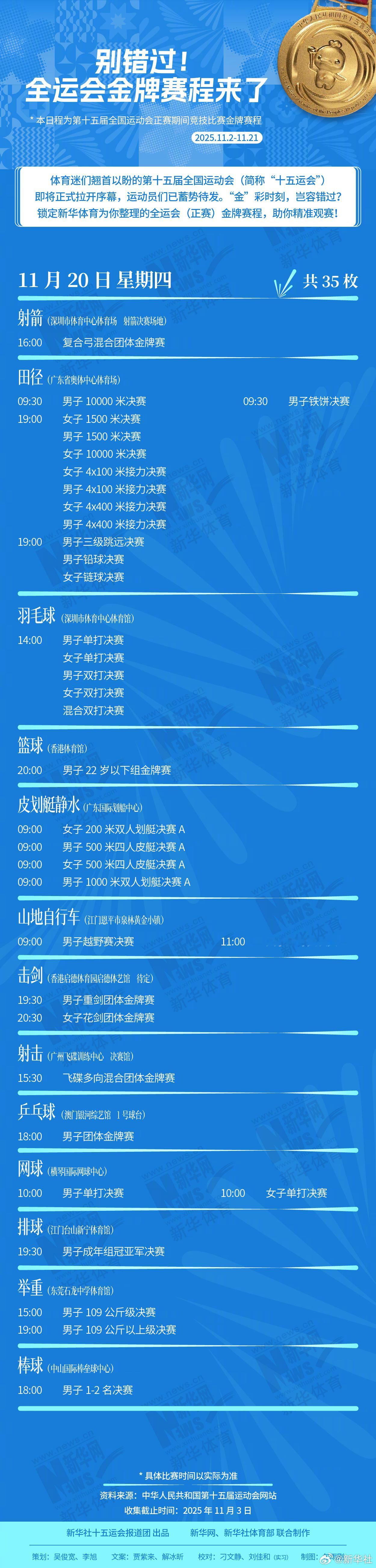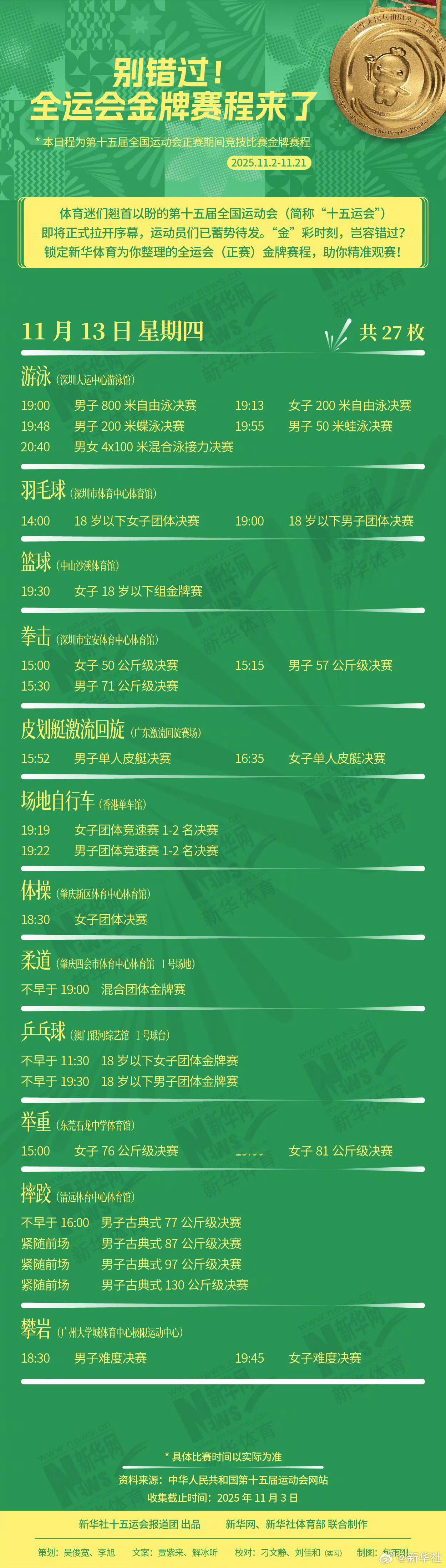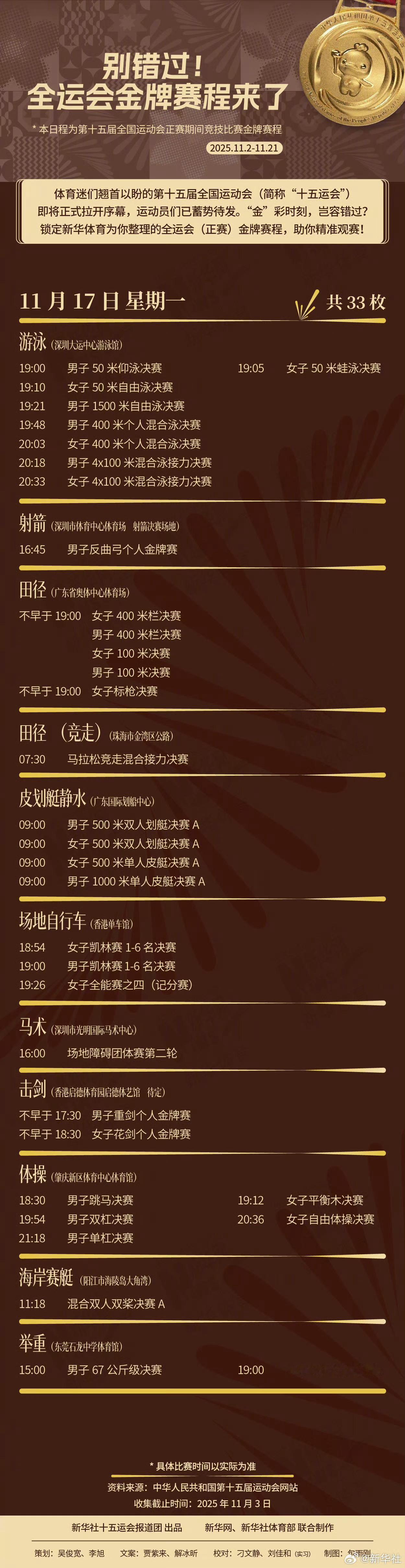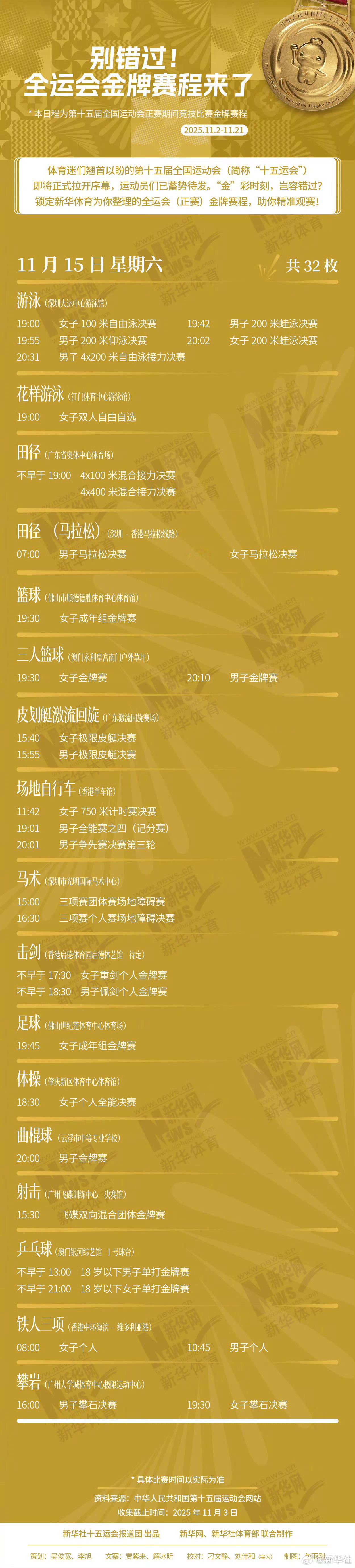【速存!第十五届全运会金牌赛程】