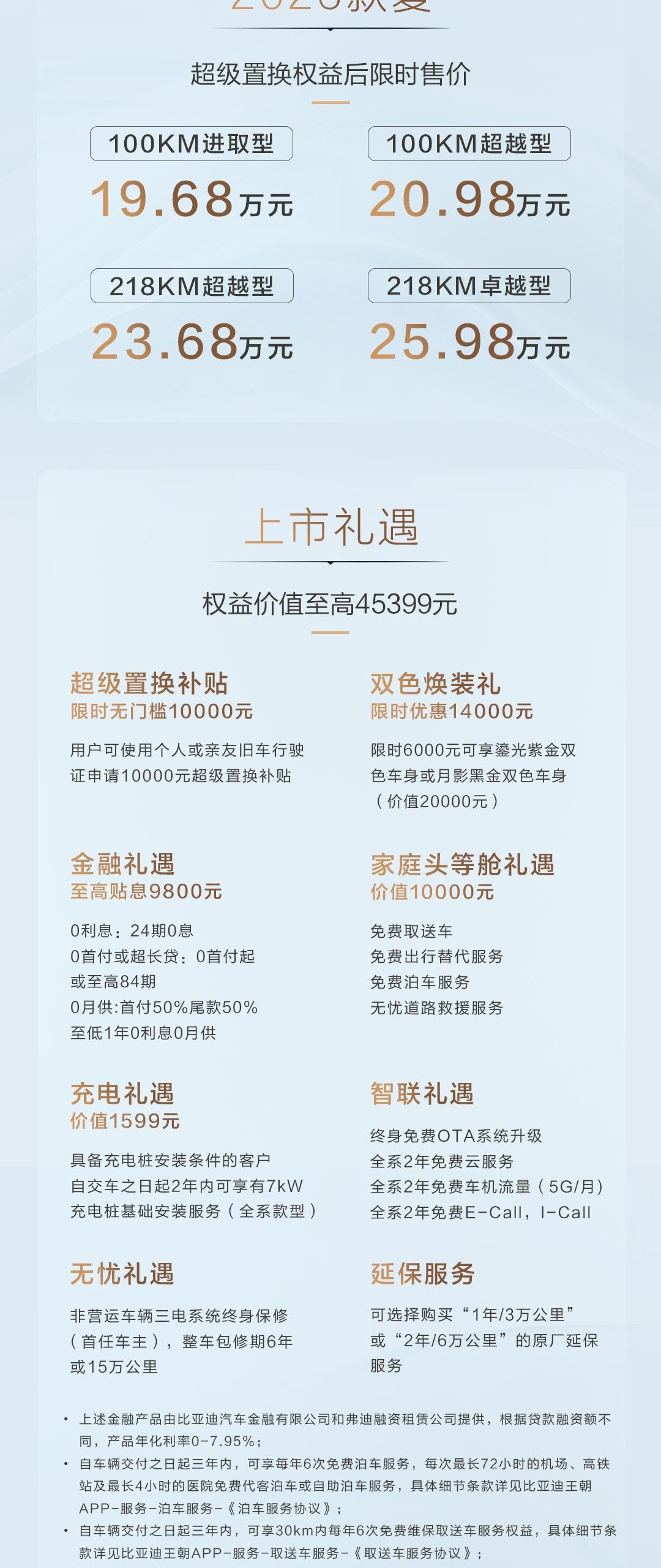 比亚迪2026款夏上市,售价20.68万元-26.98万元,12月31日前限时售价19.68万元-25.98万元。新车搭载1.5T插电混动系统,前置200kW电动机,峰值扭矩315N·m,CLTC纯电续航有100km和218km两款,综合续航1163km。【来自懂车帝车友圈】