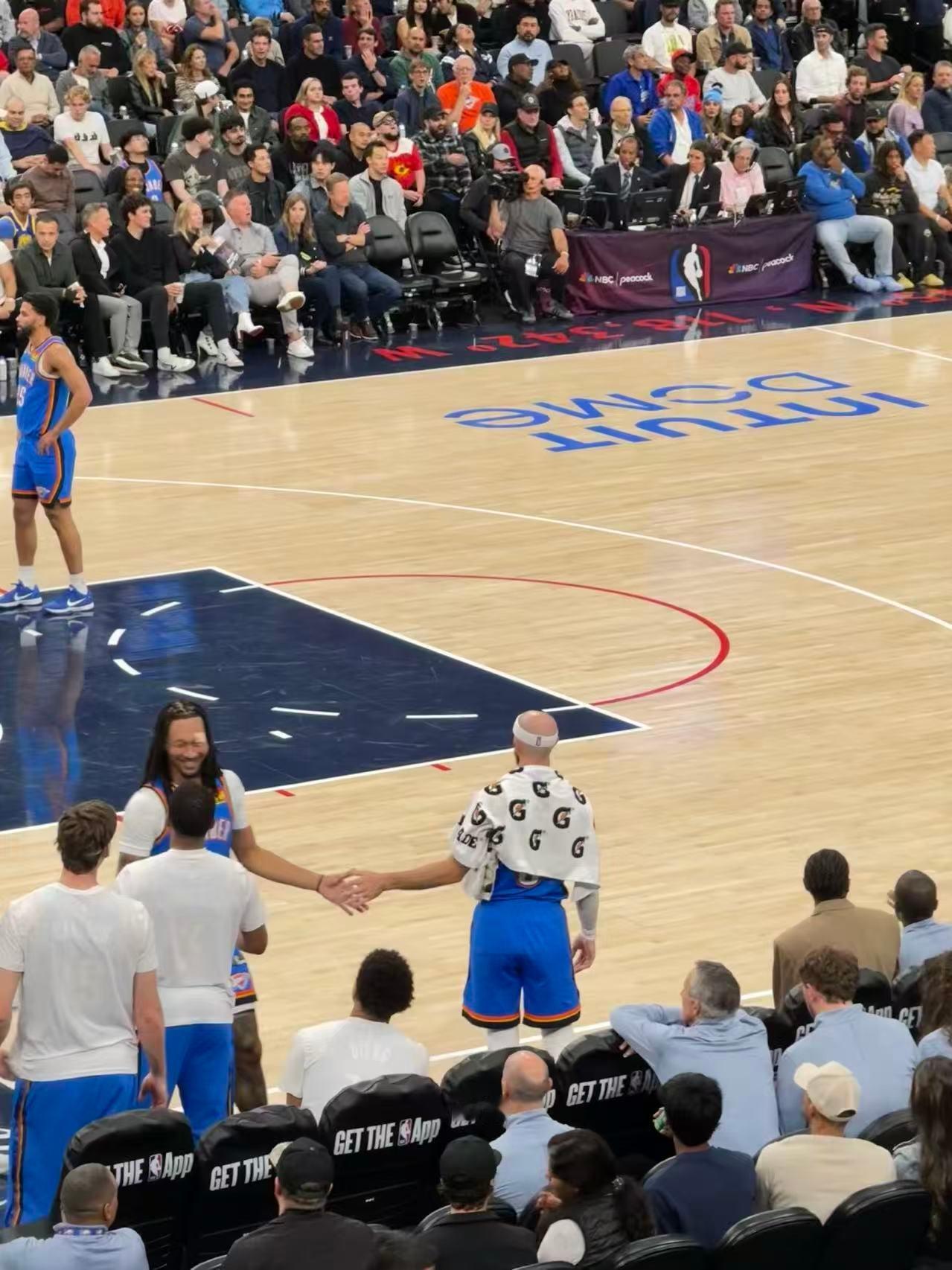 我们翻译小哥Fred在现场拍到杰林已经回到替补席,笑得很灿烂[笑哈哈]