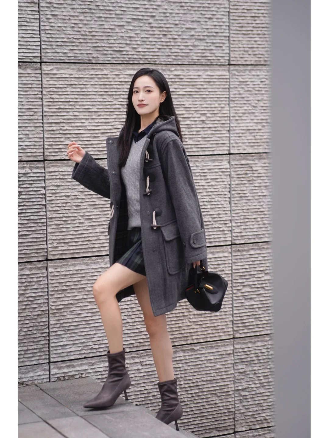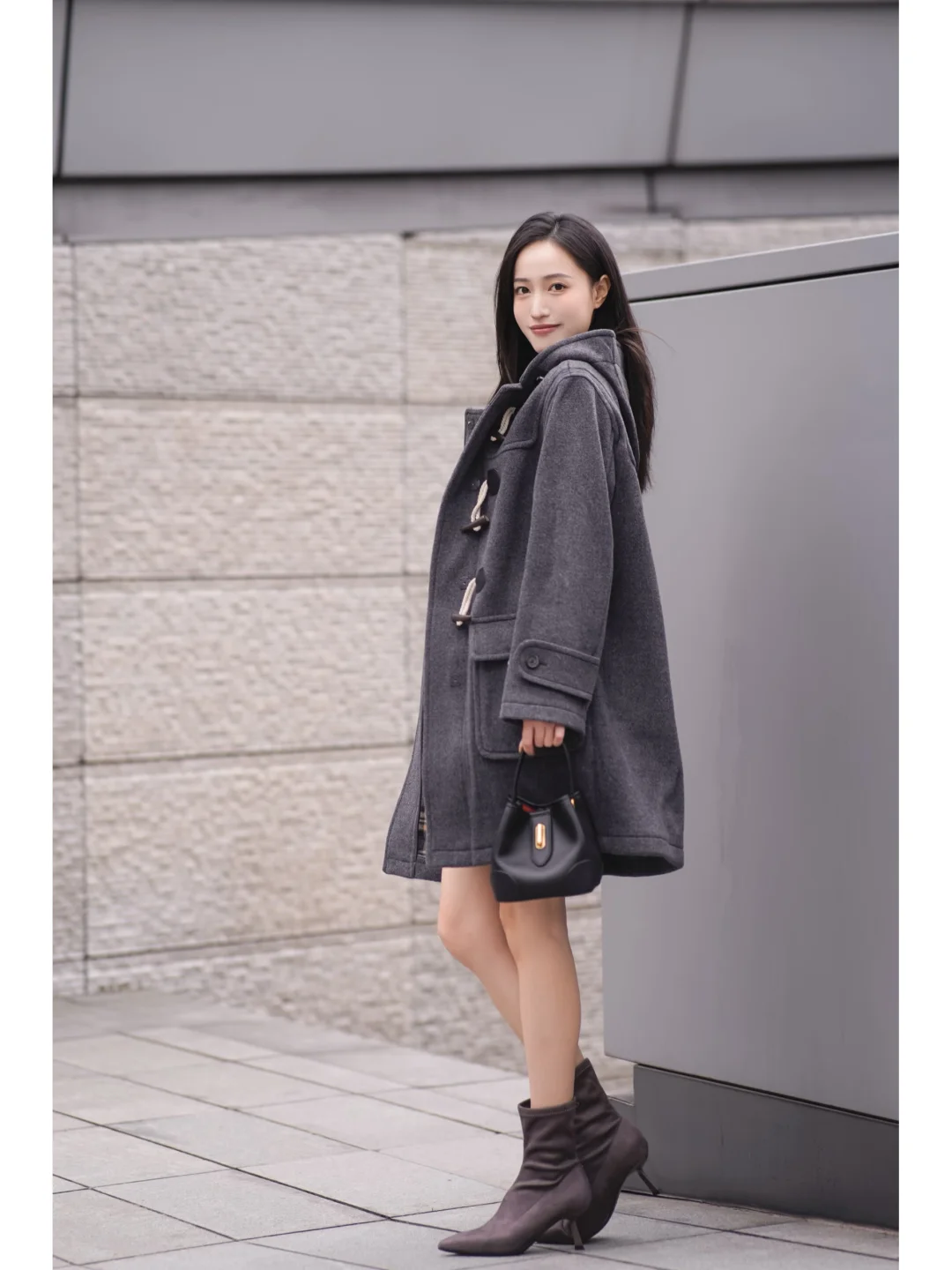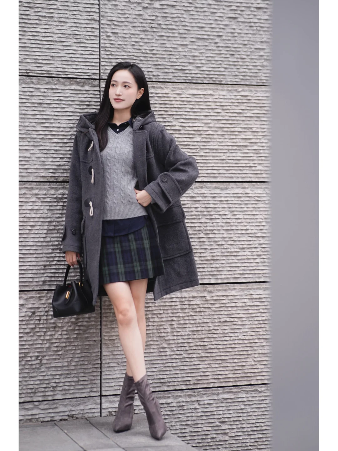 不分年龄的喜欢牛角扣大衣 灰色系叠穿自然又有层次感~