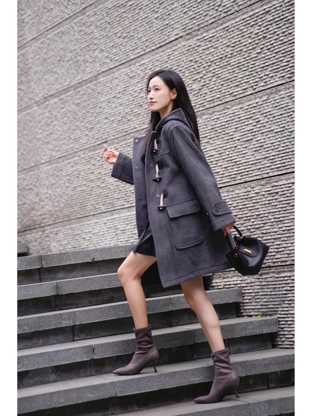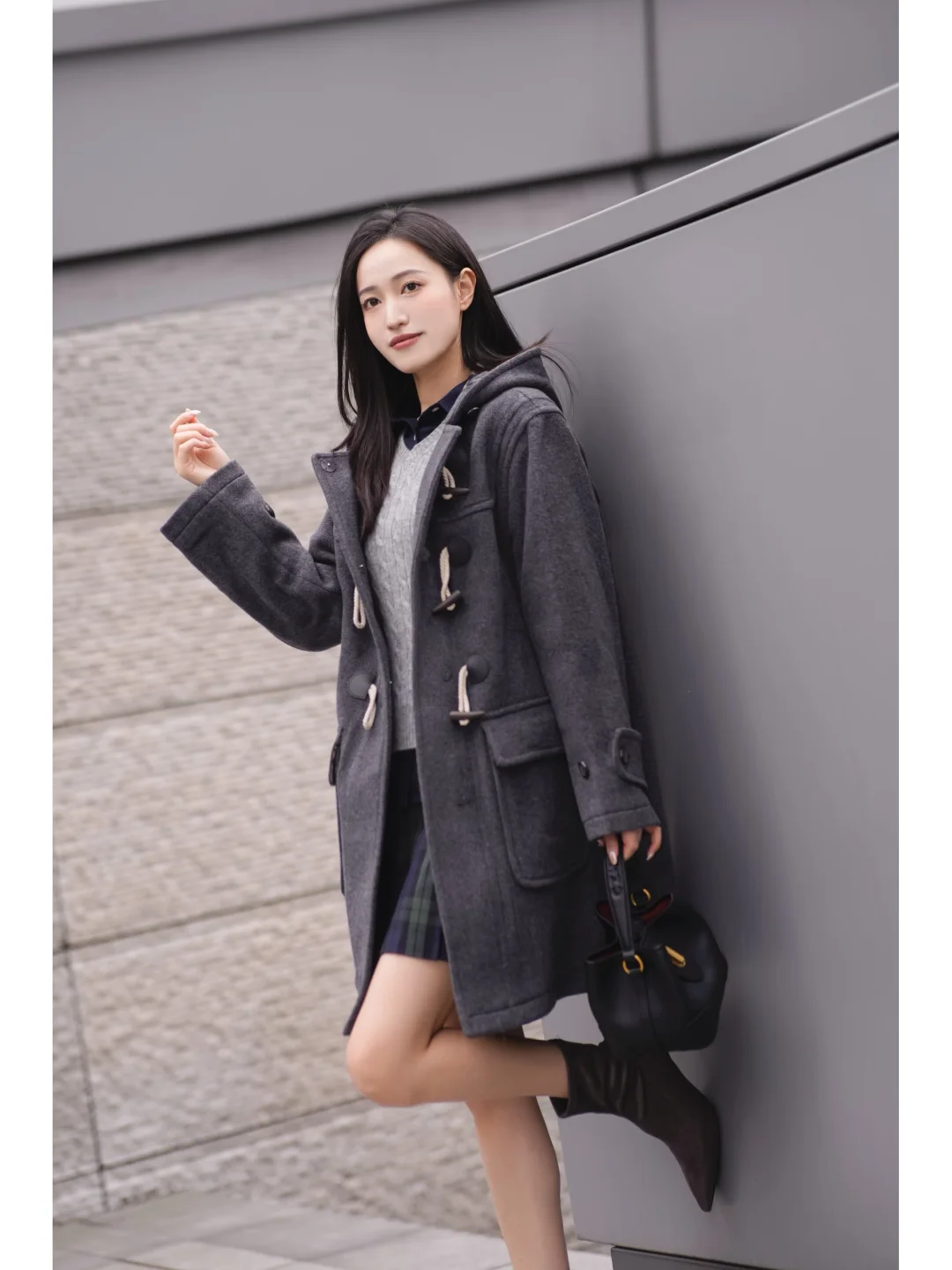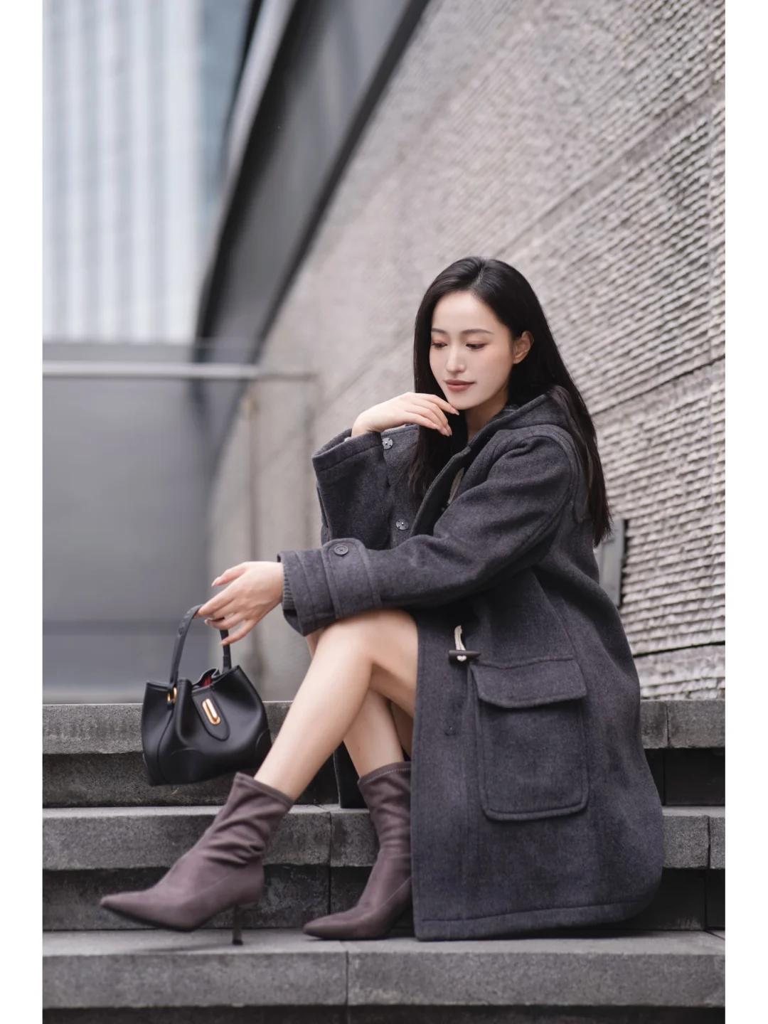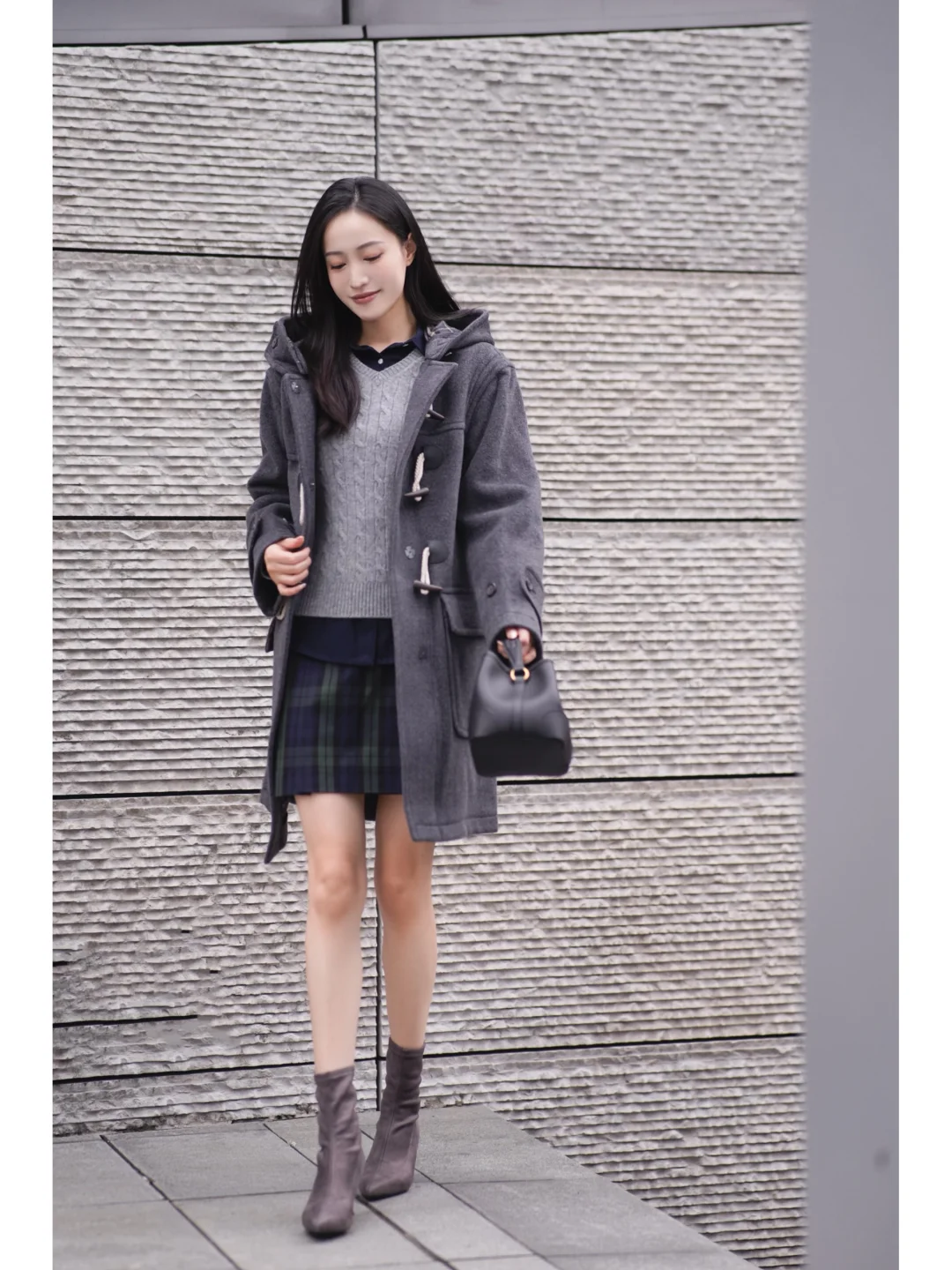 不分年龄的喜欢牛角扣大衣 灰色系叠穿自然又有层次感~