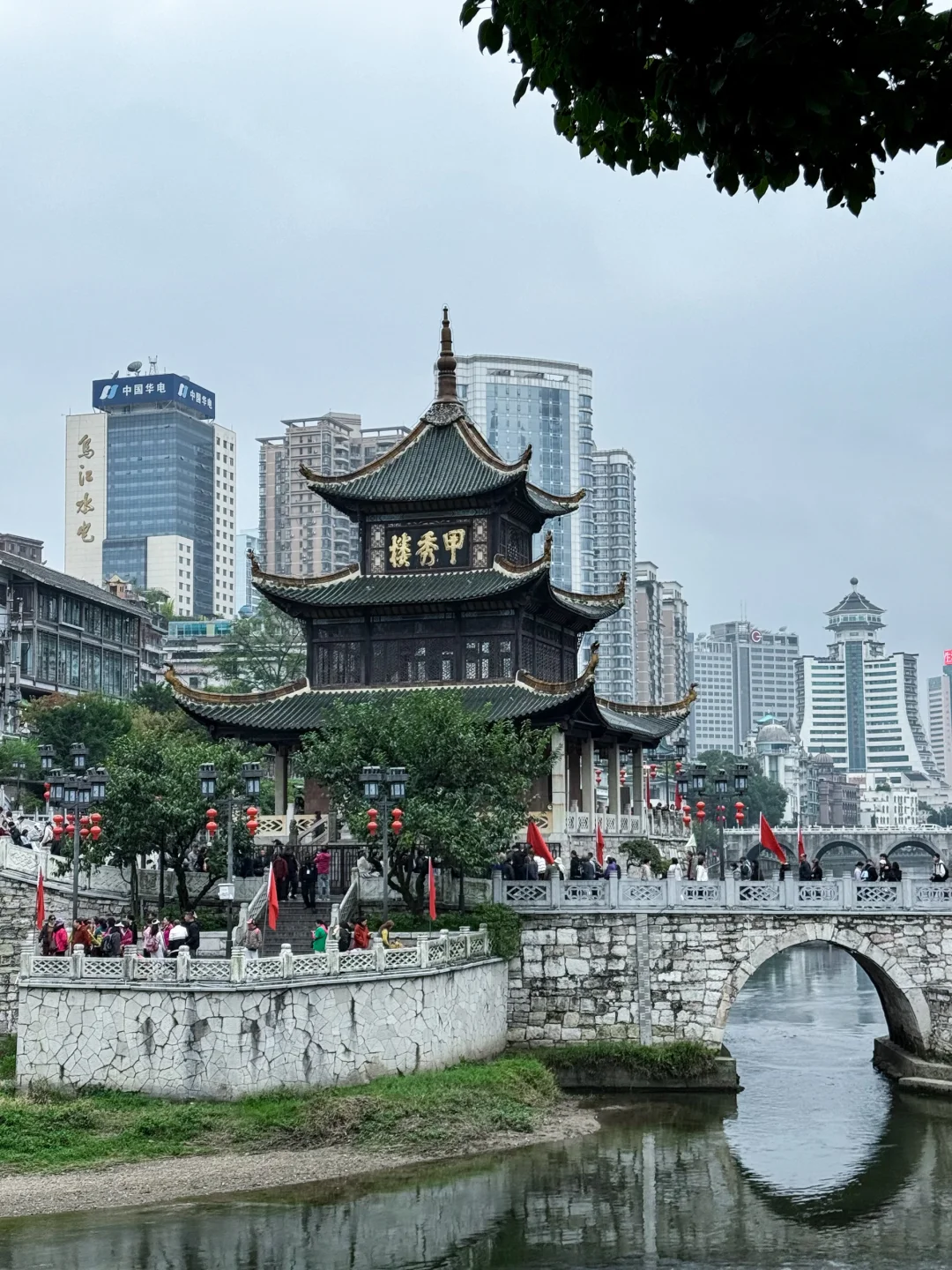 ▫️甲秀楼内部是免费开放的,甲秀楼最佳机位应该是河东岸,这里人少,背景层次也更清晰。