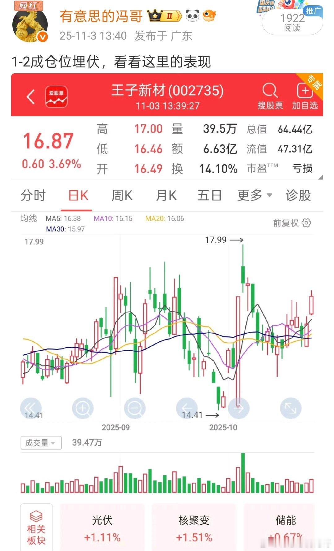 看图说话,前天埋伏的王子新材直接一波流起飞5%,又是美滋滋的吃肉阿,太给力了,恭喜大家[鼓掌][鼓掌]