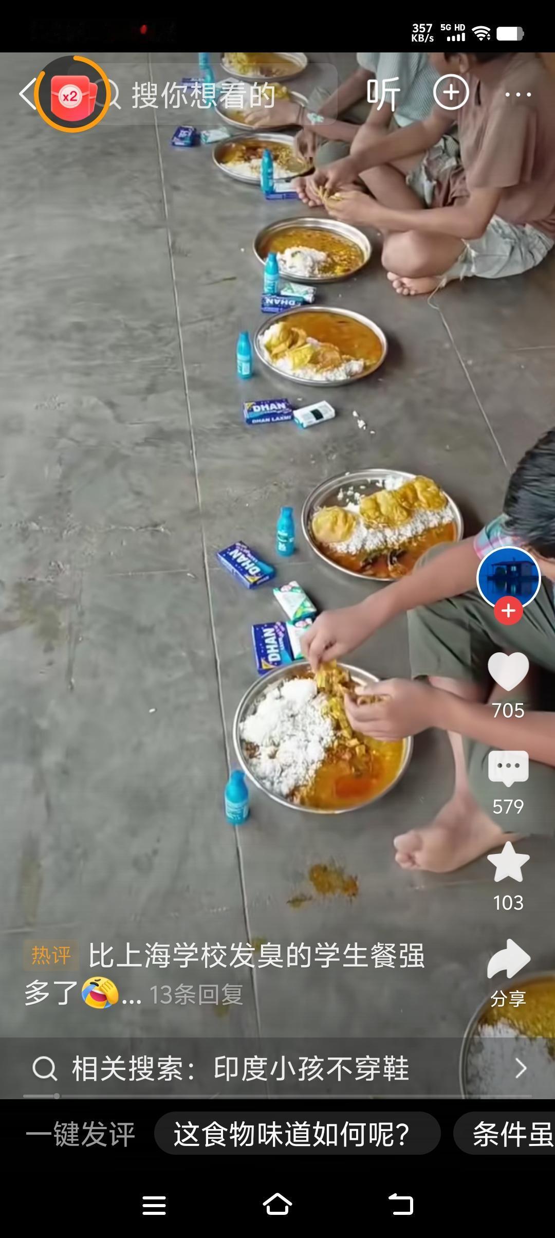 刚才看了印度小学食堂就餐视频! 第一感觉是他们洗手了吗?好好洗手没有啊? 孩子们坐在水泥地上, 面对面两排, 男孩女孩很熟练、自然地用手拌着饭菜,感觉很不舒服,会没有胃口,我们的习俗,这样搅拌的都是农村大妈喂鸡喂鸭喂猪才这样拌来拌去!看着真的没有食欲! 印度政府为了鼓励儿童入学,并保障学生基本营养,政府实行小学免费午餐的计划。 免费午餐的政策出是好的,在一定程度上减轻了普通收入家庭的教育负担,吸引了更多儿童入学! 但是 免费午餐落实情况去,这存在着很多问题, 五餐烹饪技术粗糙食品单一,不能够满足学生成长的需要。 同时小学是他还存在的卫生问题,洗手池数量不足,学生拥挤, 清洁 设施配套不齐全等情况! 总之看着印度小学的用餐环境真的不咋样! 孩子们自己洗手,一定会冲一下水就完事了,可是他们都是用手抓着饭吃,能卫生吗?用手抓饭吃这个习惯真的不咋样,太不卫生了!
