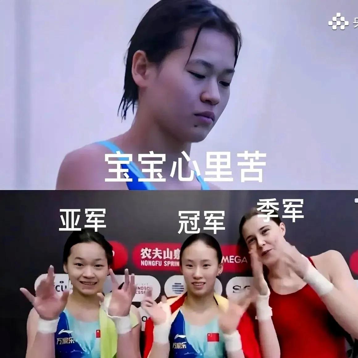 婵宝赢了不笑,输了不哭,不是因为她不敢,因为她太“软”。 记得巴黎奥运会之后的一次央视采访中,她说,自己上届拿了冠军,这届又拿金牌,我这么做是不是不对? 当时,记者差点都哭了。 因为她是太心软的孩子,看不得小陈眼里的泪水,她得了冠军后,立马跑到小陈身边,给她一个深深的拥抱。 因为她知道小陈真的挺不容易的,训练非常刻苦,可还是没有得到冠军。 相反,全红婵温莎站获得亚军,她没有失落,反而反思一下,说自己因为体重原因。 还说,发育期体重涨了,动作没有那么灵活了,平时的训练也没跳过这么好,青春期稳定了就好了。 所以,婵宝,明白自己得失原因,不纠结,把眼光放远。 其实,小陈也非常优秀,但她太想得冠军了,容易患得患失,如果没有得冠军,她就会情不自禁的哭,很容易陷入忧虑。 相比之下,婵宝就更容易想的开,看的开,失败了并不会太悲伤,成功了也不会太开心,还经常为对方着想,这样的性格谁不喜欢呢?