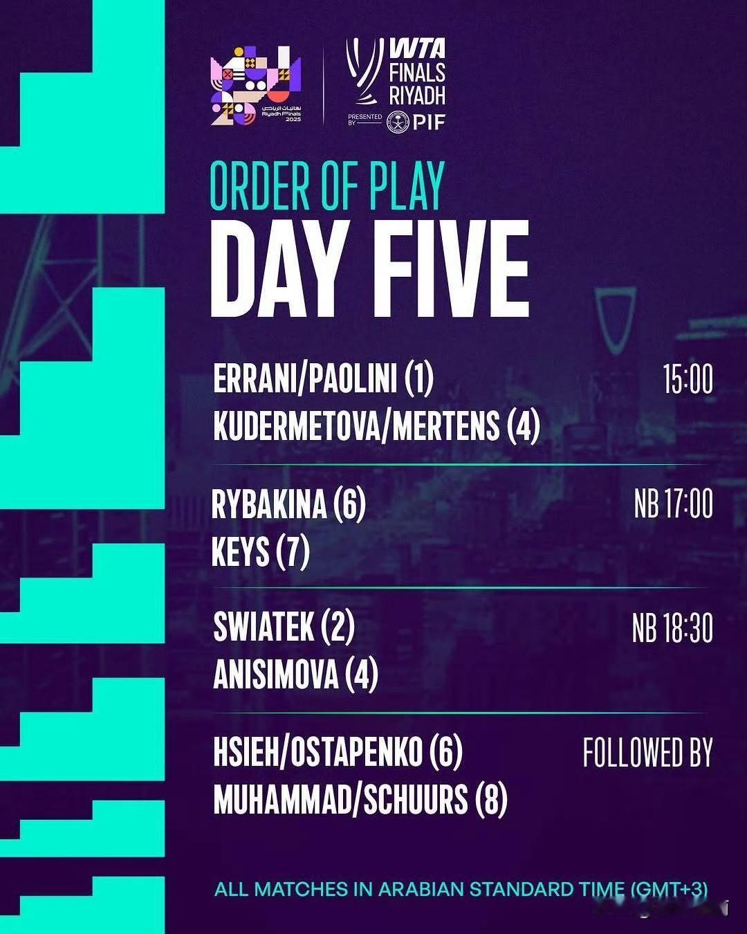 WTA女网单打总决赛小组赛第二轮!莱巴金娜率先晋级四强!萨巴伦卡出线主动权在手! 格拉芙组 萨巴伦卡2-1佩古拉,高芙2-0保利尼 萨巴伦卡两连胜(4-1),高芙(3-2),佩古拉(3-3)均1胜1负,保利尼(2-4)两连败。 第三轮对阵🆚 萨巴伦卡-高芙,保利尼-佩古拉 小威廉姆斯组 莱巴金娜2-1斯瓦泰克,阿尼西莫娃2-1凯斯 莱巴金娜两连胜提前锁定小组第一,凯斯两连败提前出局! 第三轮对阵 莱巴金娜-凯斯,斯瓦泰克-阿尼西莫娃(谁胜谁锁定小组第二) 双打方面,西尼亚科娃/汤森德 ,谢淑薇/奥斯塔彭科作为各组小组第一提前出线!