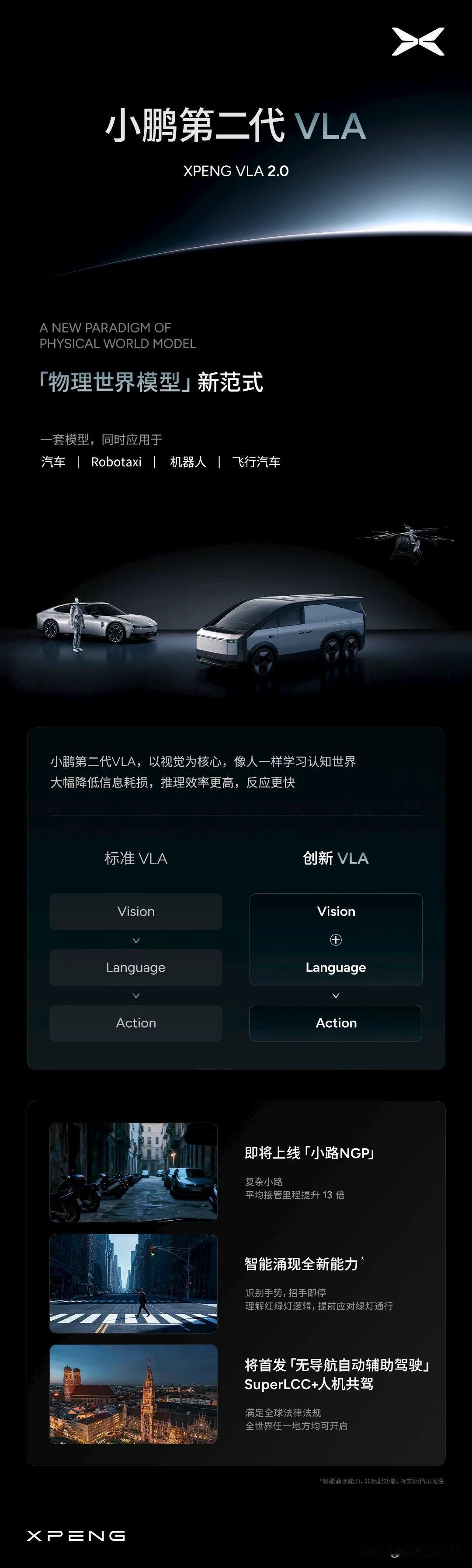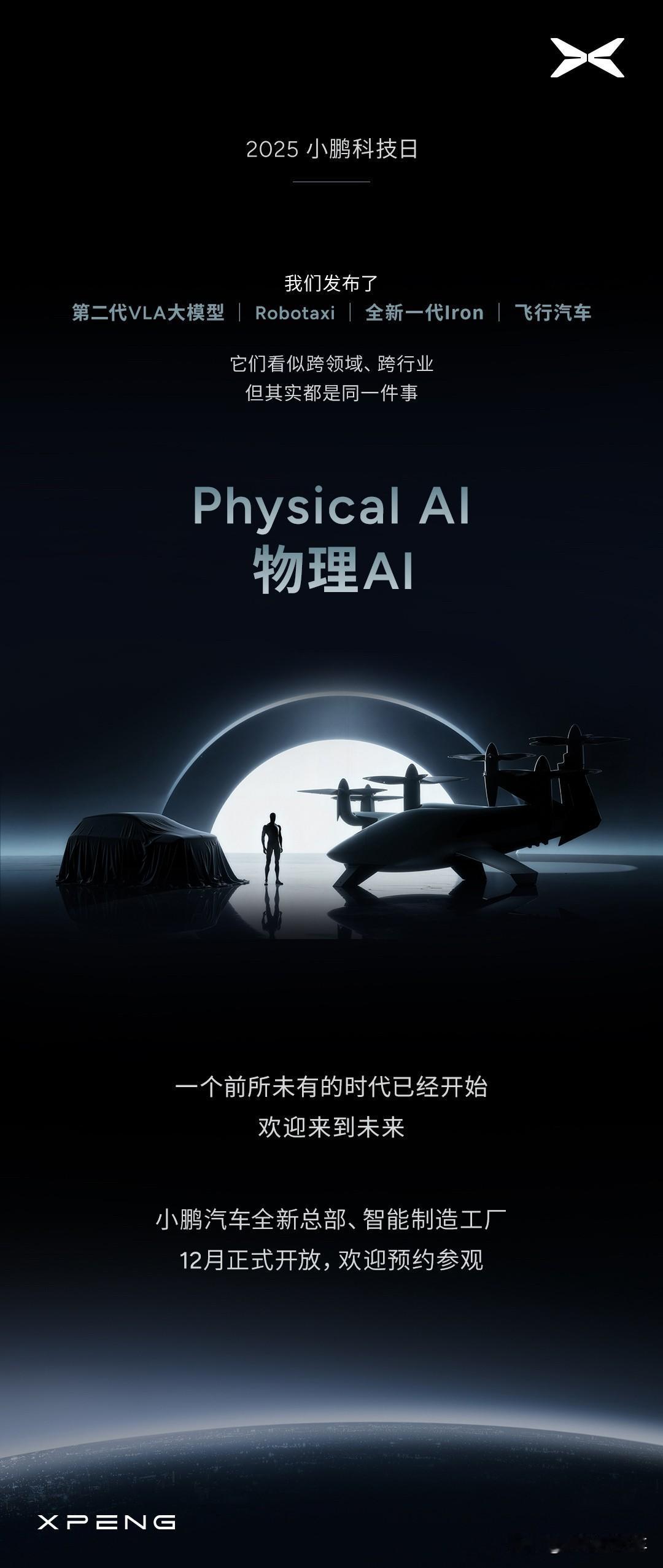 硬核干货来啦!本届科技日小鹏汽车基于软硬件全栈自研的物理AI体系,发布了四大应用: 小鹏第二代VLA大模型、小鹏Robotaxi、小鹏全新一代IRON、汇天飞行汽车 一图读懂2025小鹏科技日「涌现Emergence」! 何小鹏首次披露物理AI巨大进展 小鹏将推出3款全球化Robotaxi