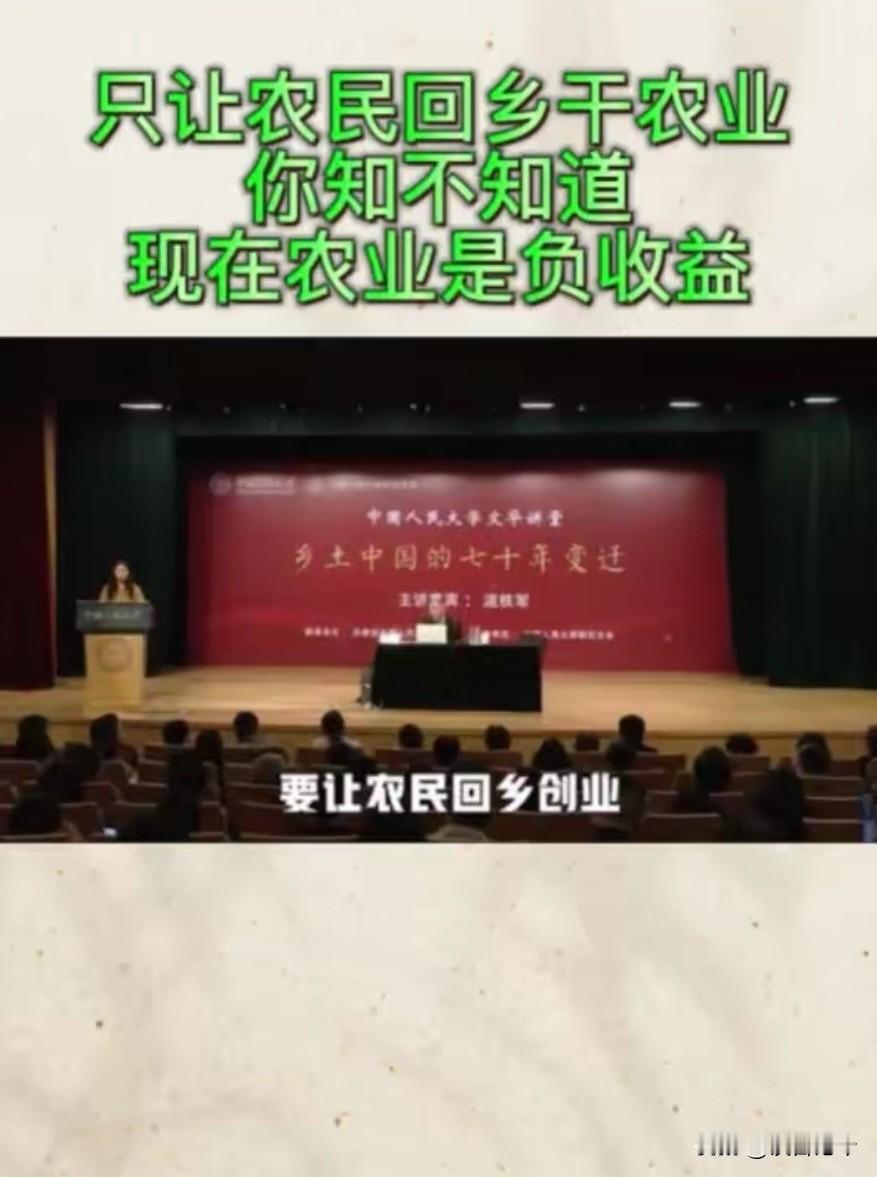温铁军:只让农民回乡干农业,你知不知道现在农业是负收益? 这话听着扎心,但全是他用脚踩出来的实话,不是那些翻着教科书的专家能编出来的。 温铁军1968年就揣着空粮袋去山西汾阳插队,那年他才17岁,初中都没毕业,一待就是十多年。在地里跟老乡一起种玉米、算收成,住过废窑洞,跟着大队干部赶车往公社送粮,亲眼见农民把饱满的好粮交上去,自己留着瘪粒凑合吃,才摸清农业的“家底”有多薄。 他1983年从人民大学毕业后,1985年就进了中央农村政策研究室,这一待就是11年。那地方可是当年农村研究的“黄埔军校”,他跟着杜润生、吴敬琏这些老前辈做调研,还从青藏高原出发,骑摩托沿黄河跑了8个省,用四个月摸清了沿岸农村的真实情况 。 那时候乡镇企业正红火,吸纳了上亿农民,有人种地有人进厂,现金收入连续四年超城市。可90年代政策调整后,大量乡镇企业倒闭,农民的副业路一下就断了,这场景他全记在了调研本里。 他后来总提农业的账本,不是随口说的。2023年官方数据显示,种一亩玉米总成本都到1312.06元了,化肥、机械、人工全算在内,最后净利润才154.38元,还没刨除农民自己的辛苦钱 。更要命的是,金融机构嫌农业周期长、收益低,甚至可能为负,压根不愿放贷,这是他反复强调的客观规律。 这哪是农民懒?是政策把农村多元发展的路堵死了。他不空谈理论,2003年就办了晏阳初乡村建设学院,学晏阳初的思路从制度上找办法,还搞了大学生支农项目,第一年就有72个高校社团参与。后来又推城乡互助,让城里人选有机菜,农民稳赚钱,他的学生石嫣就是跟着他下乡调研后,才扎进农场实践的 。 那些说“农民就该干农业”的人,压根没算过这笔历史账。他在《八次危机》里写得明明白白,中国工业化的成本多年来都在向农村转嫁,三农不仅出了“原始积累”,还扛了好几次城市经济的风险,现在的收益问题就是这么攒下的 。 各位读者你们怎么看?欢迎在评论区讨论。