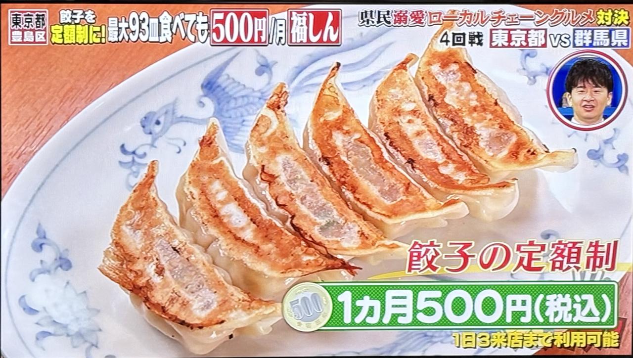 东京丰岛区中华料理连锁店福しん,饺子定额制月500円,一天三回来店吃三碟,一碟六个。