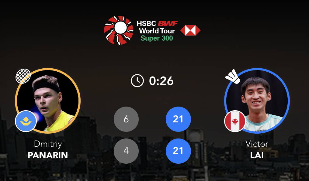 赖浩俊🇨🇦 21-6、21-4 🇰🇿帕纳林