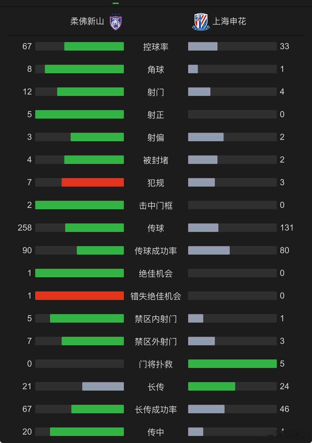柔佛新山vs上海申花8比1的角球,12比4的射门,5比0的射正。能做到不失球也不容易了。