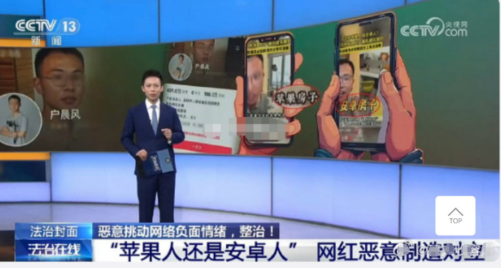 户晨风多平台账号被封禁央视官宣了户晨风被封的根源:“制造阶层对立”,“苹果、安卓论收割流量...突破监管红线”,“本质是通过制造尖锐对立议题、煽动群体间情绪、贩卖焦虑”...