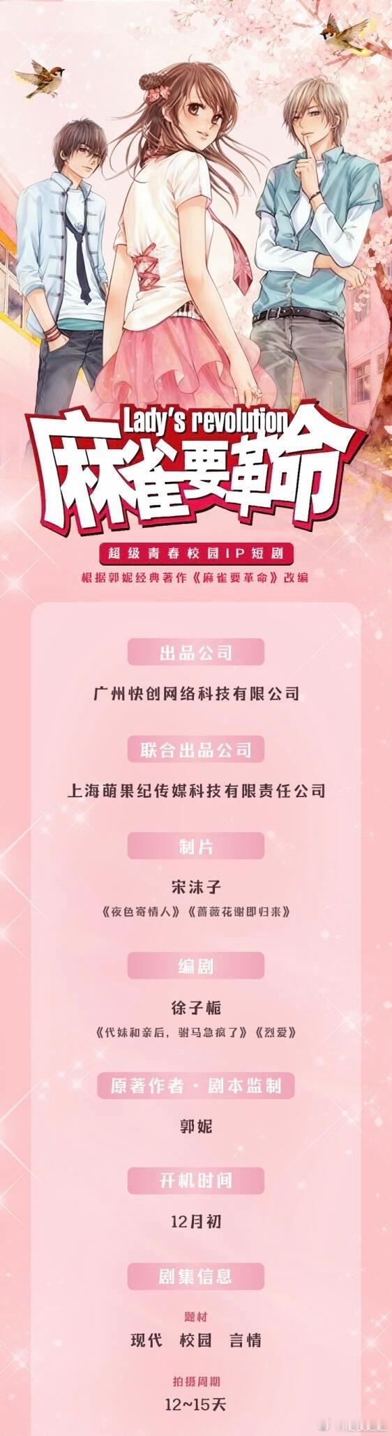 [泪奔]哦买噶时代的眼泪! 麻雀要革命要拍成短剧了! 12月初快创拍! 嗯天使街23号也不远了!