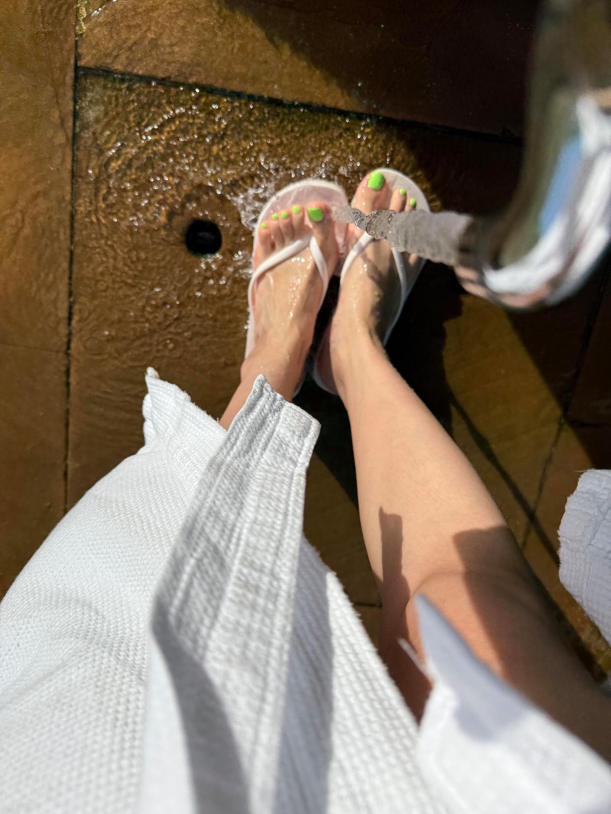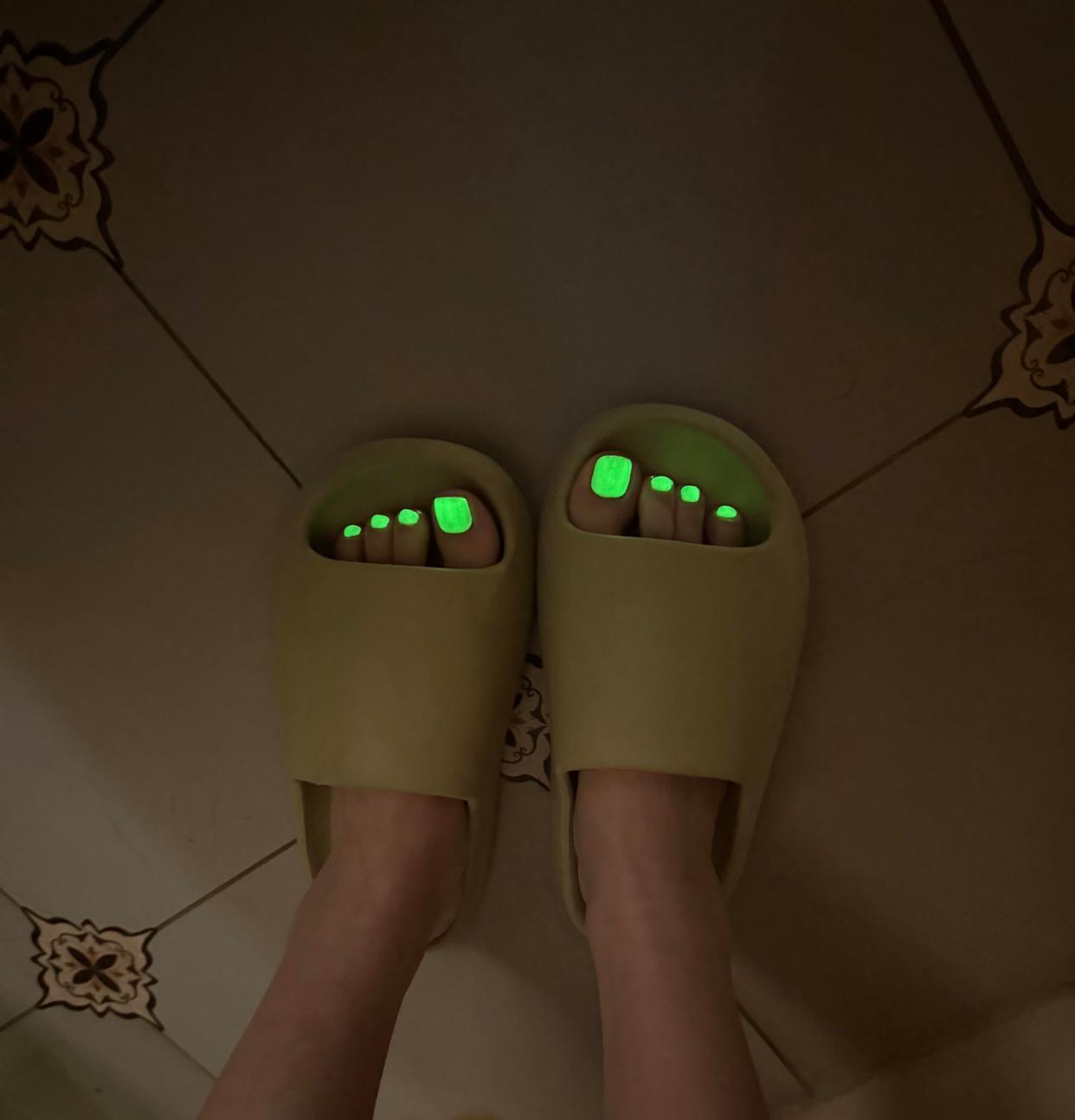 亮眼的彩色荧光美甲超适合沙滩,白天吸睛、晚上发光,搭配人字拖出门超有氛围感,实用又好看!