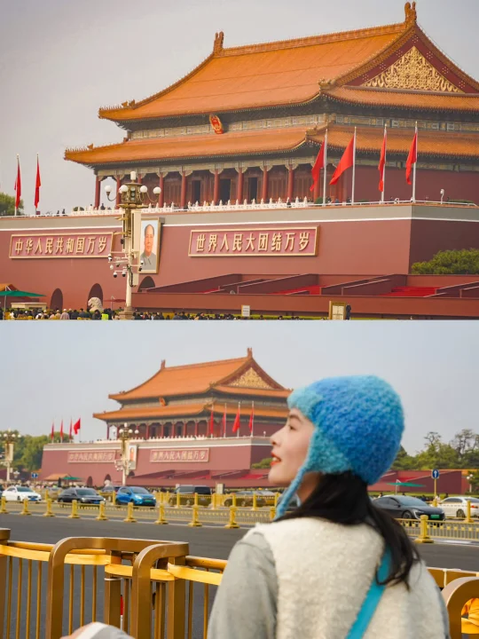 ✔️去天安门记得提前预约!!如果没预约也没关系,可以去我路线里的机位,也可以拍到天安门合影📷