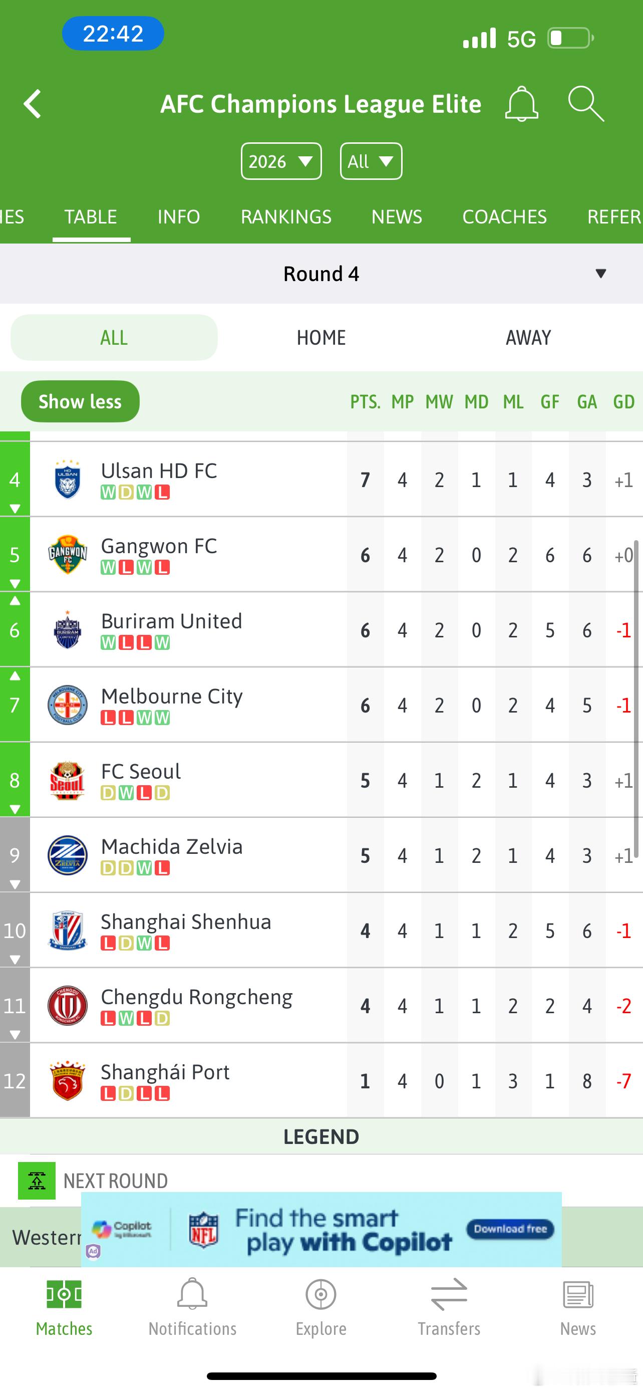 本赛季4轮过后,申花1胜1平2负(比去年多输1场),成都1胜1平2负(和去年山东一样),海港1平3负(比去年多输一场)。柔佛新山3比1上海申花亚冠