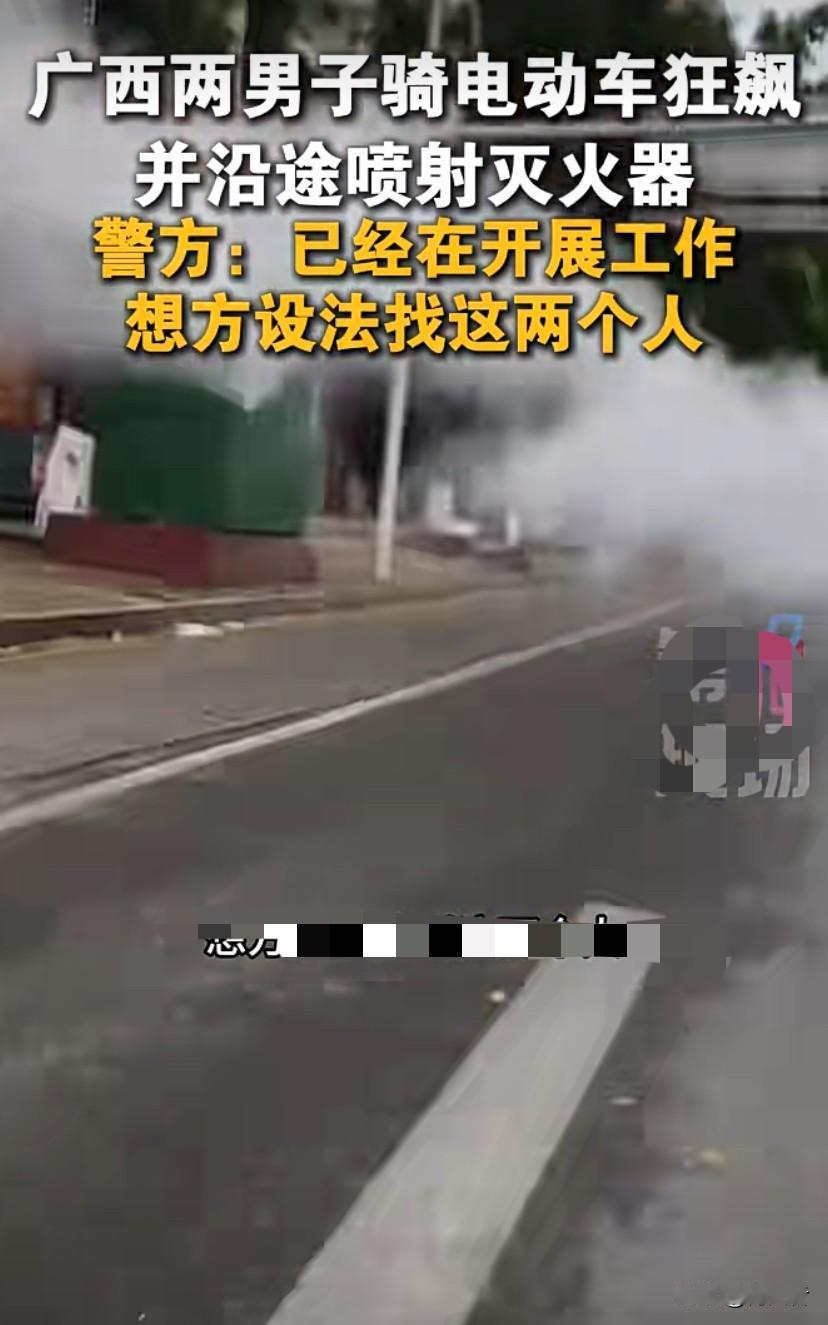 广西两男子疯狂飙车,沿途喷射灭火器,导致整条路都是浓烟滚滚,这也太疯狂了,后面的车要是出事,这得承担多大责任。