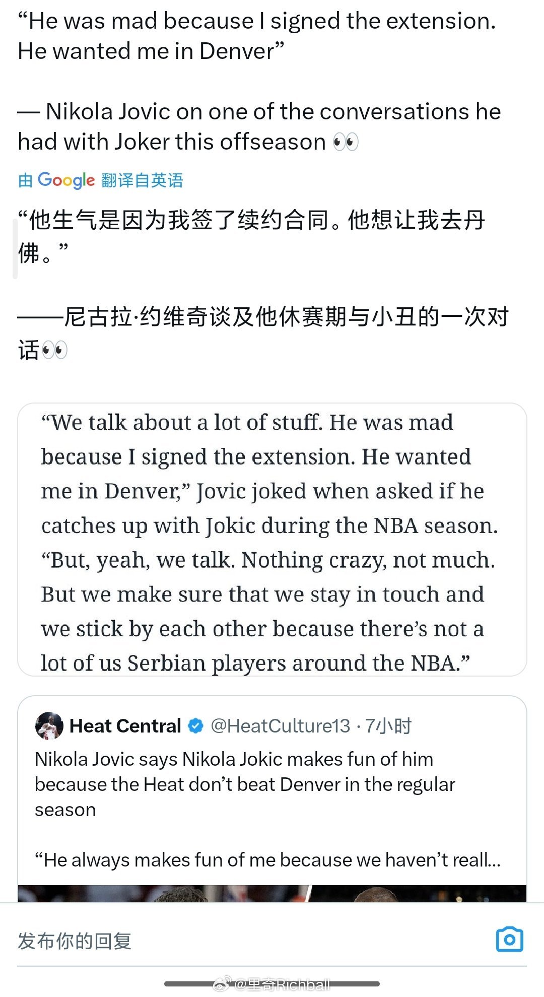 约基奇经常嘲笑约维奇[流鼻血]