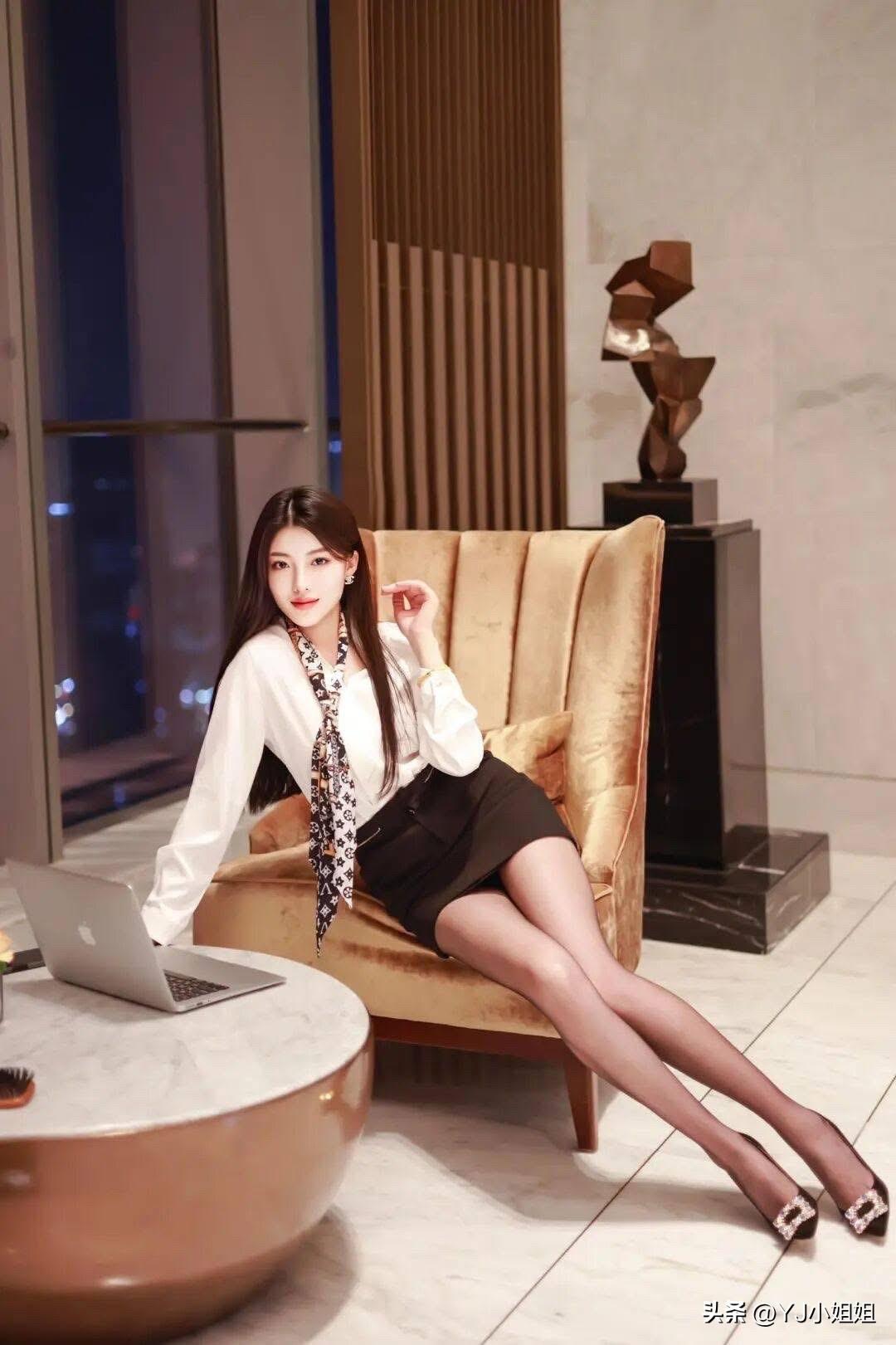 都市女郎的优雅姿态,时尚穿搭与现代办公环境的完美结合。