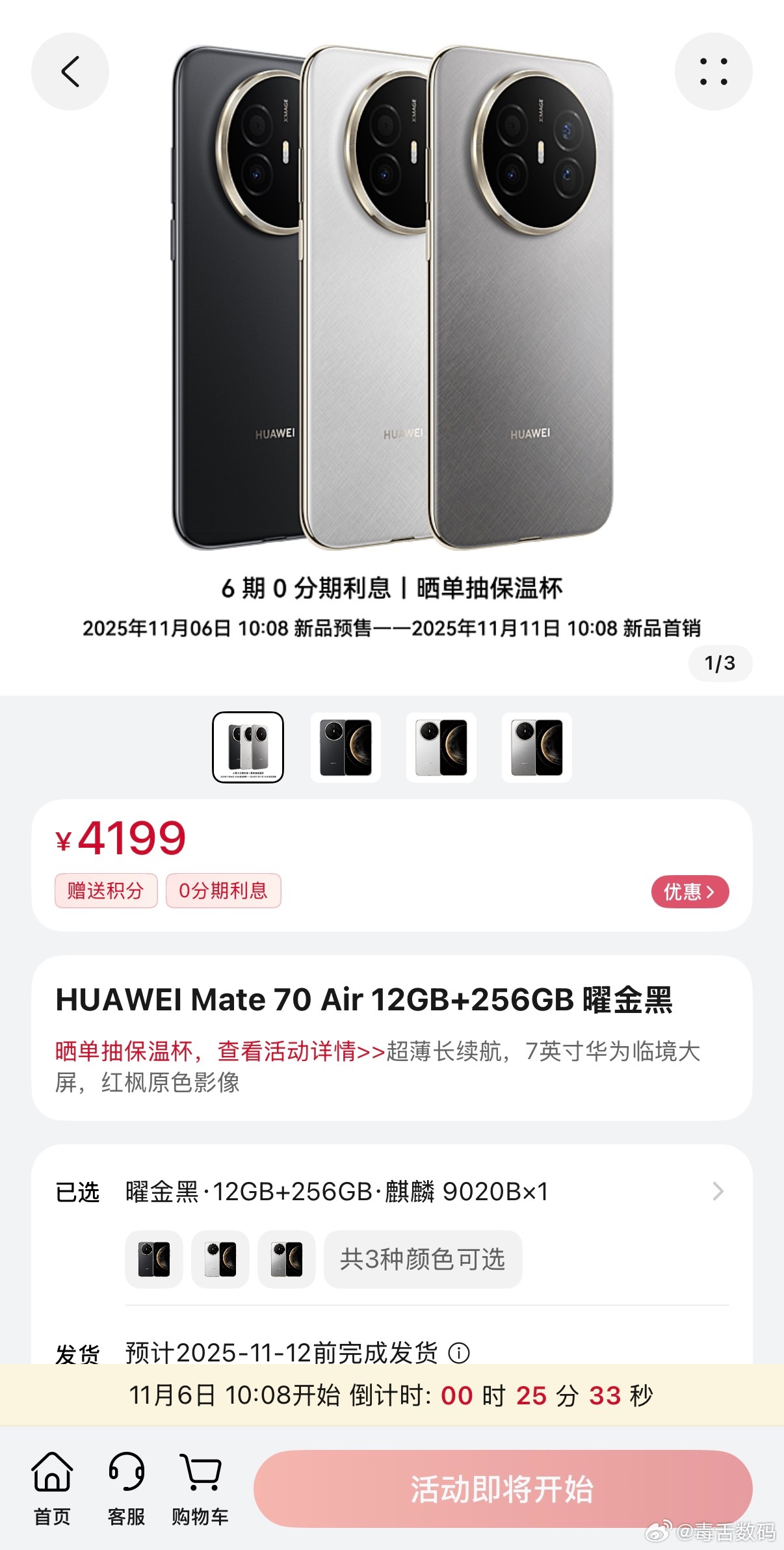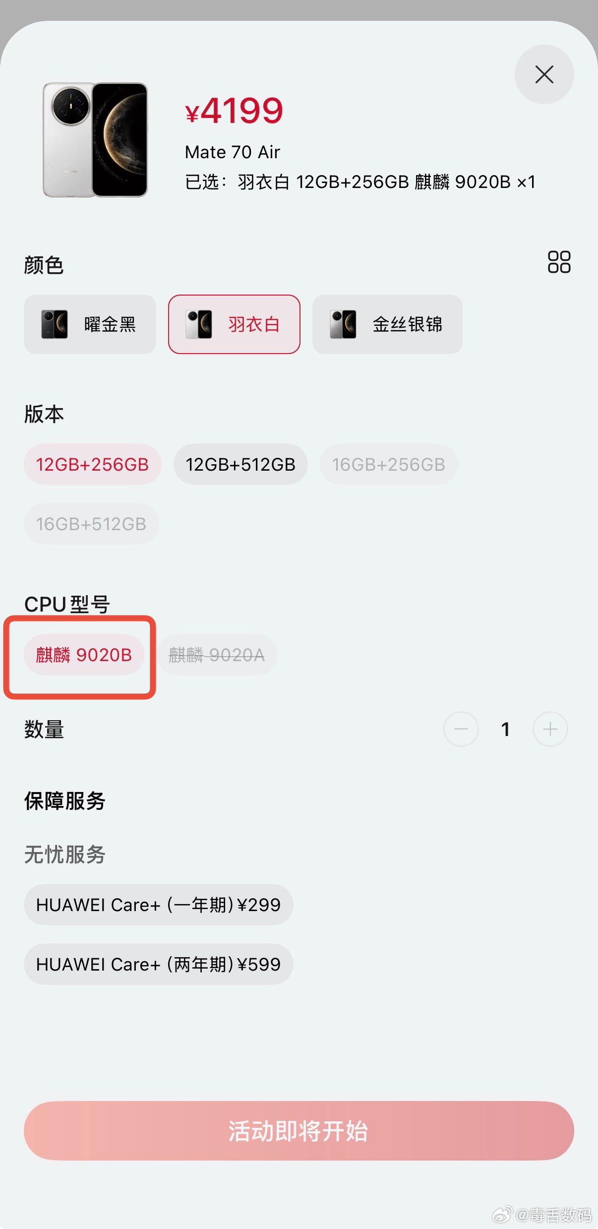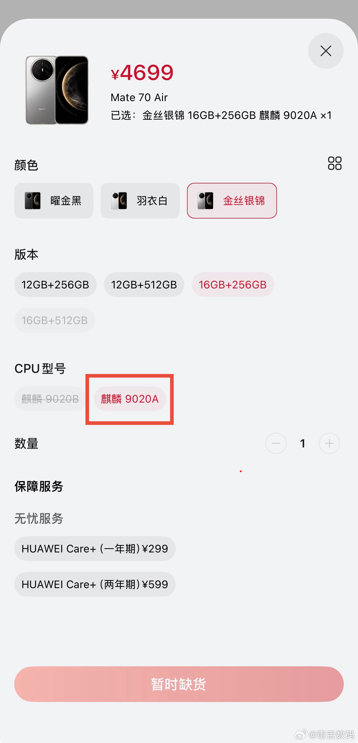 华为Mate70 Air突然直接上架,厚度6.6mm,价格4199起。可以选择处理器麒麟9020B和麒麟9020A[思考]