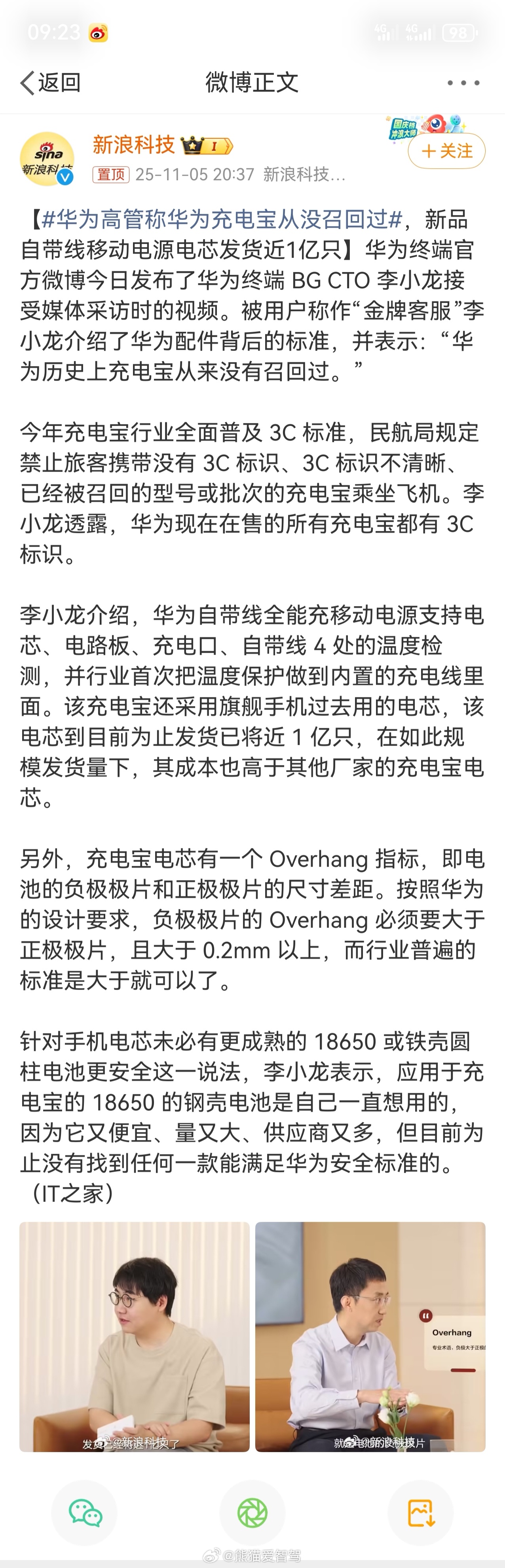 华为高管称华为充电宝从没召回过其实做产品就跟做人一样,讲良心做好东西,不然[思考][思考][思考][思考]