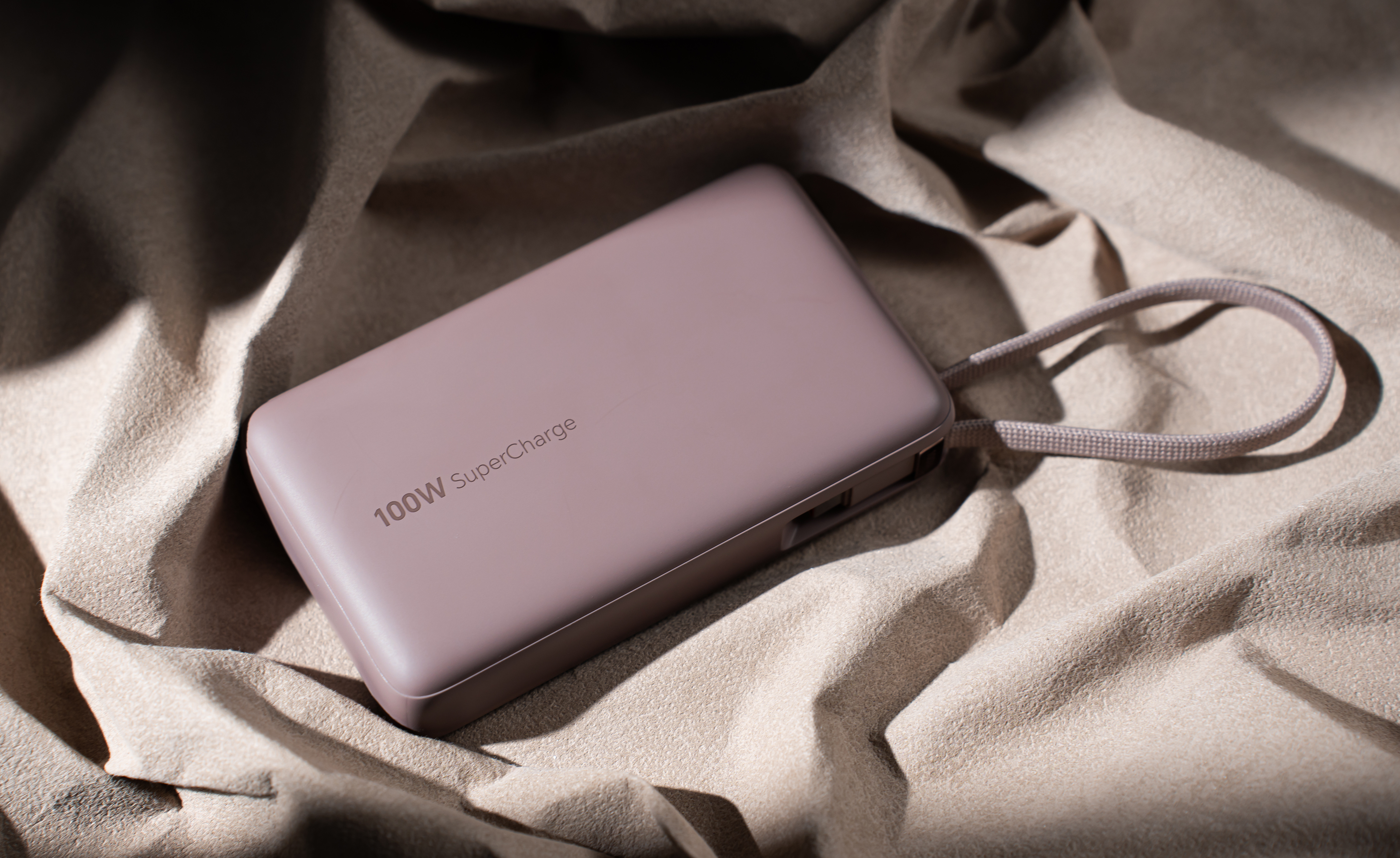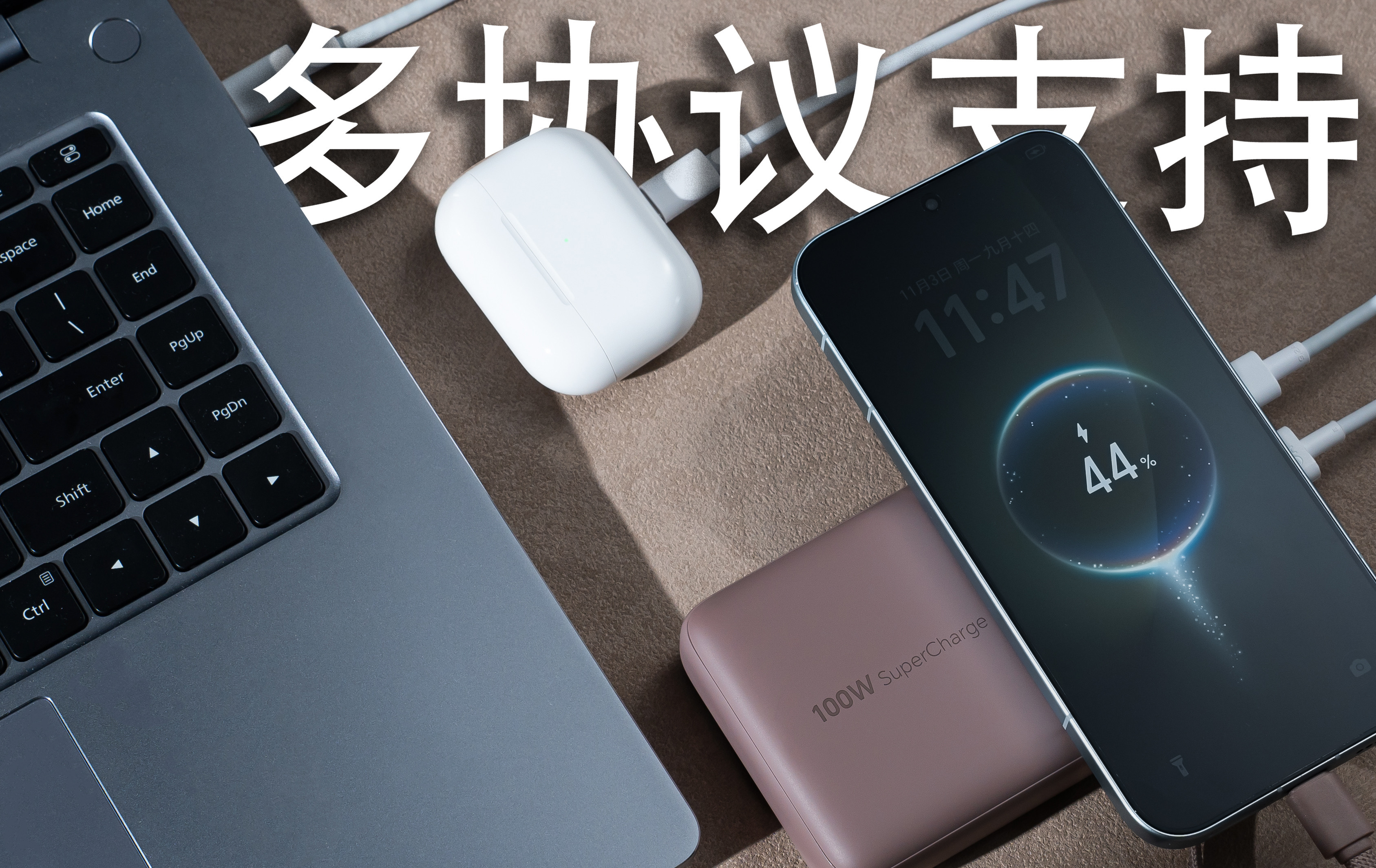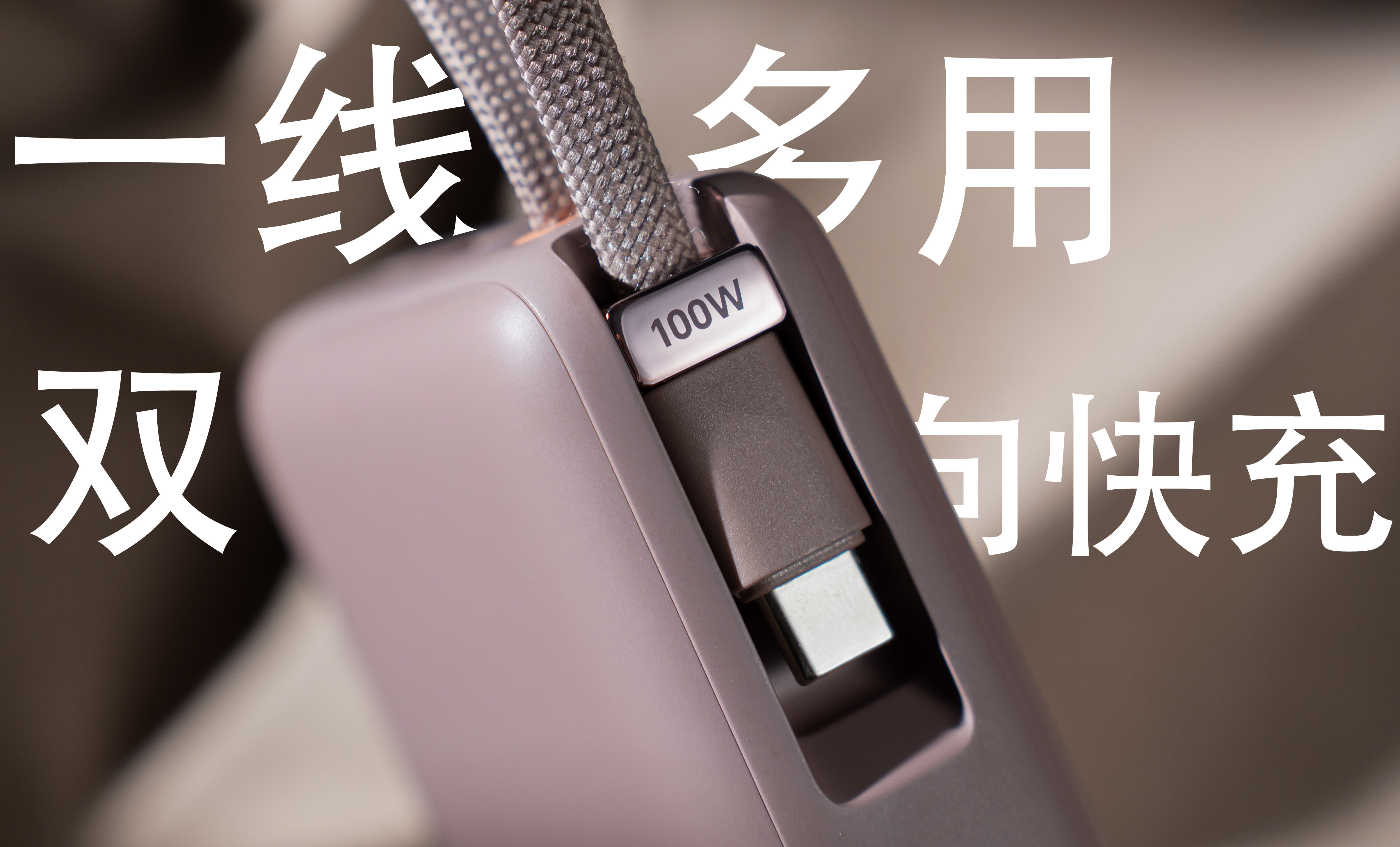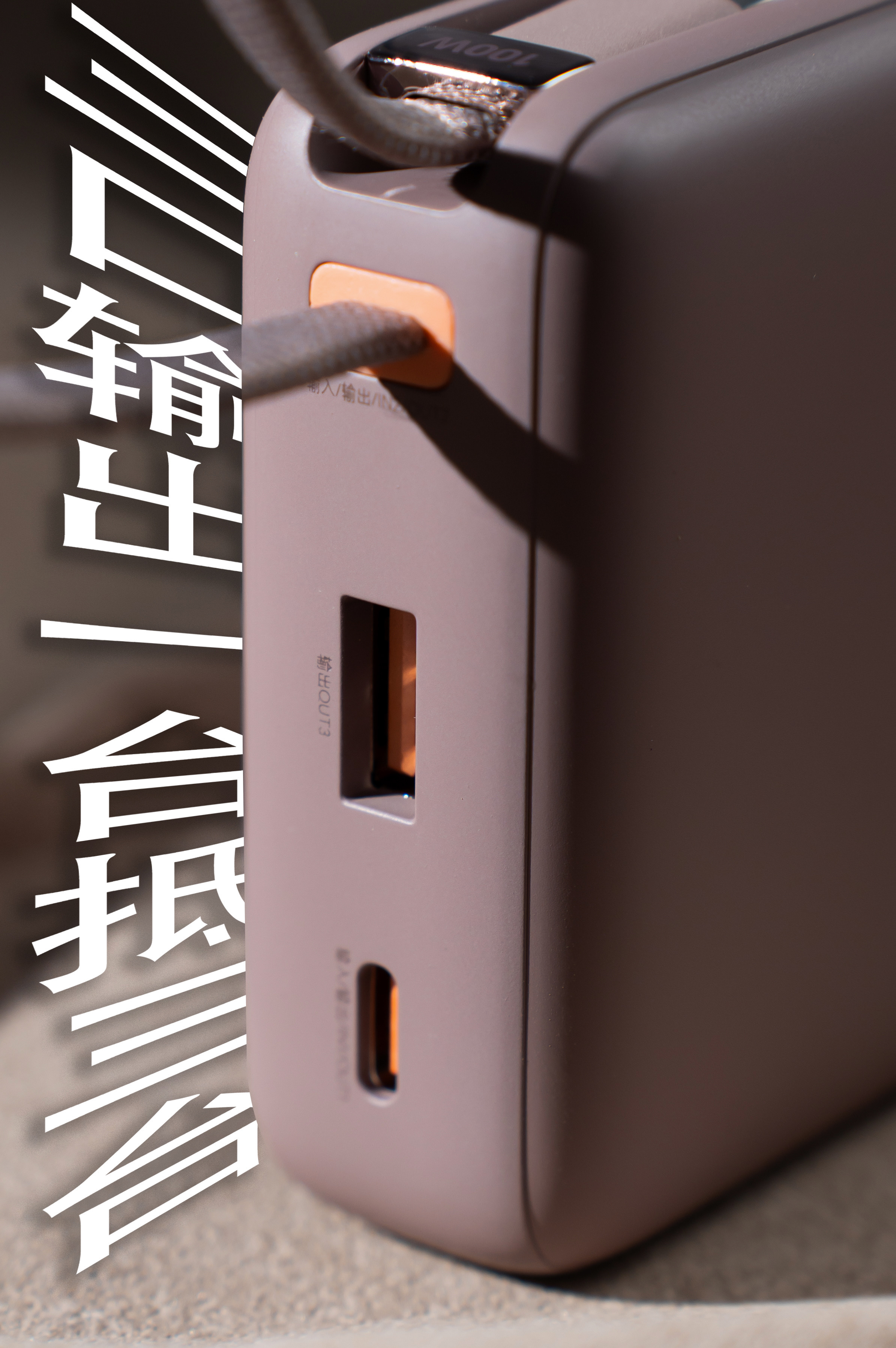 磨砂外壳摸起来细腻不沾指纹,低饱和度的灰紫色,显得柔和又雅致。最贴心的是自带USB-C线直接藏在侧面凹槽里,拔出来就能用~而且20000mAh大容量真不是虚标!给我的荣耀手机充电,100W超级快充插上半小时就能从20%回血到80%,赶高铁前充10分钟也能撑大半天。平时还能同时充笔记本电脑和耳机,双口输出互不耽误,绝对给好评!