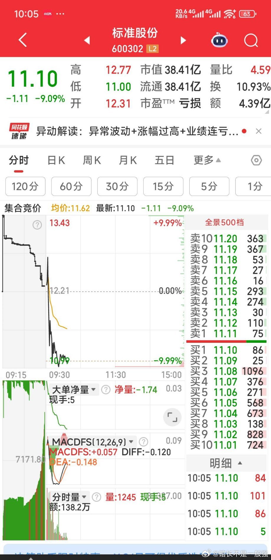 保变电气和恒大高新估计难上车,故撤单,资金11.11元按计划加仓了标准股份。