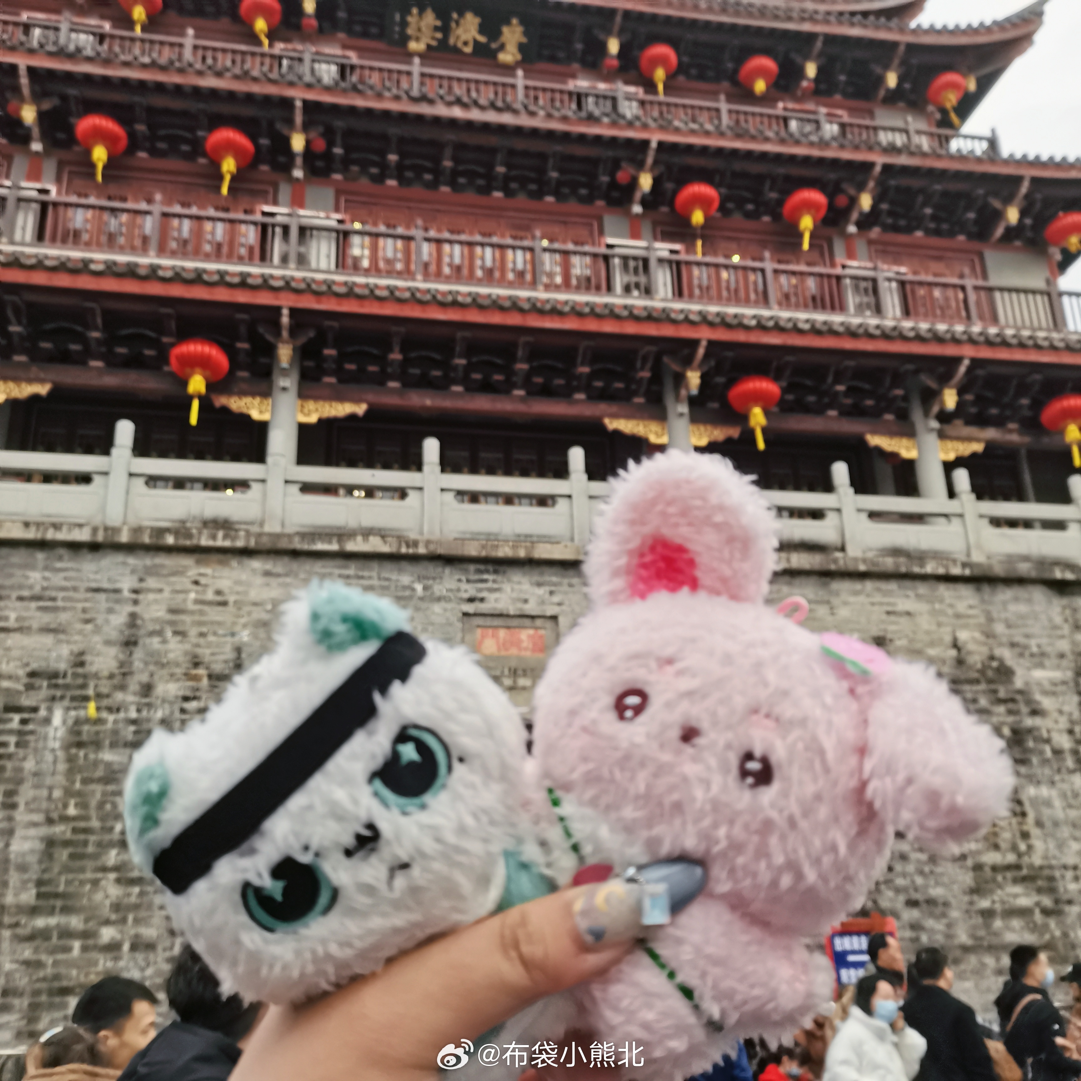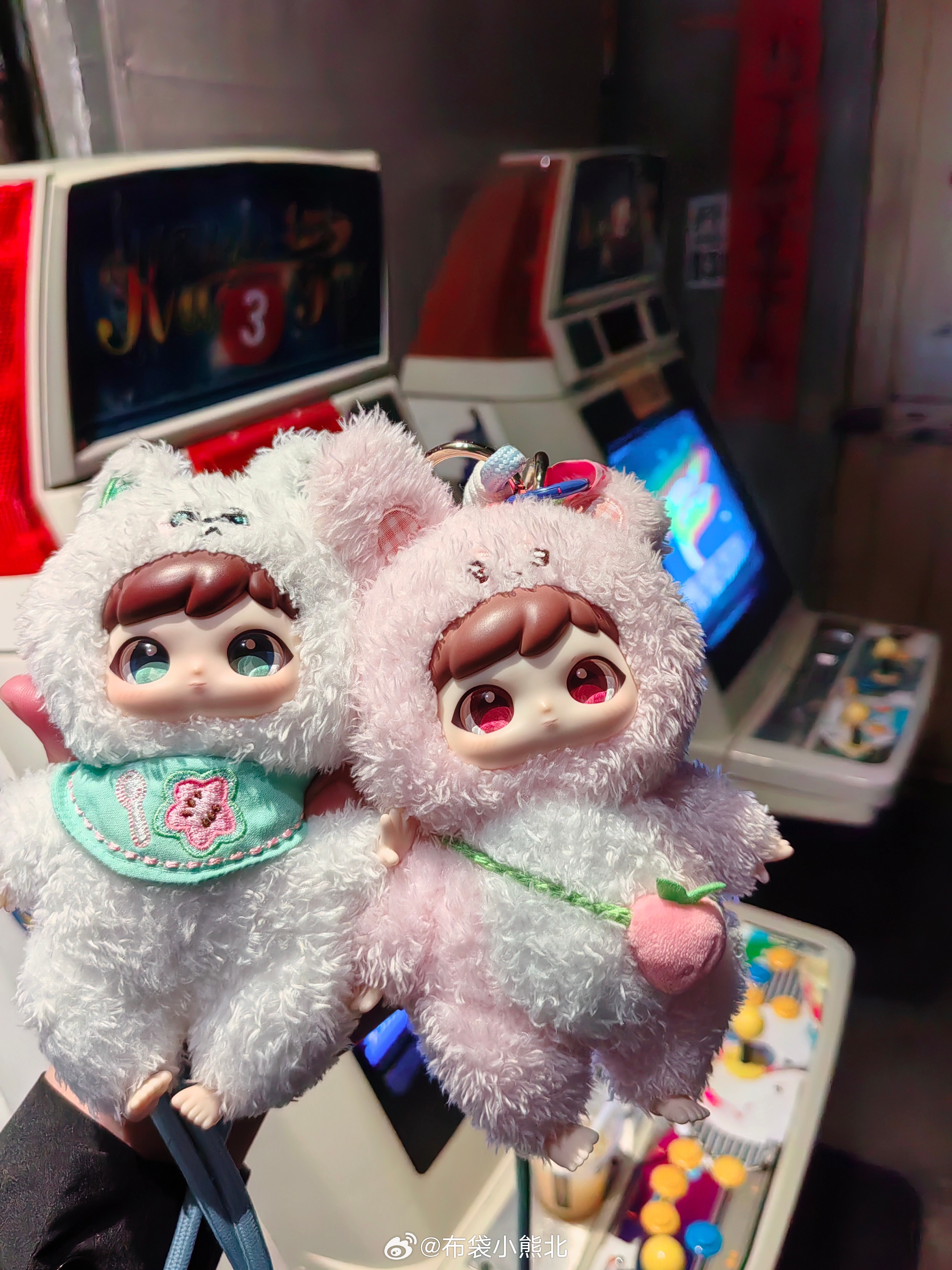 朋友和小熊北出去玩 小熊北报以左边两个石郭娃右边两个石郭娃包里两个石郭娃还有石郭