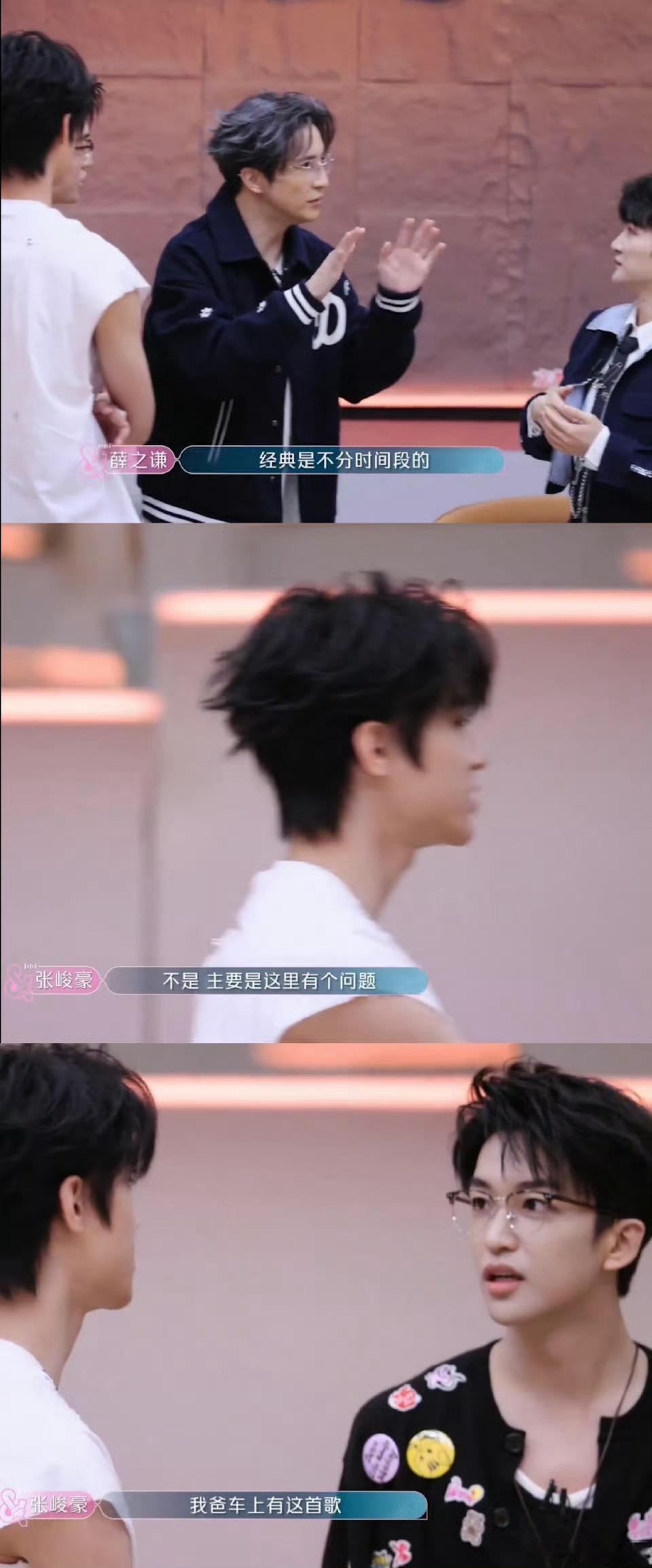 薛之谦的青春是张峻豪的历史课 这是什么跨世纪暴击!薛之谦兴冲冲聊《水手》,张峻豪淡定接话"在爸爸车上听过",还贴心把老薛的歌也归入父辈歌单。这一连串暴击让薛老师彻底放弃表情管理!