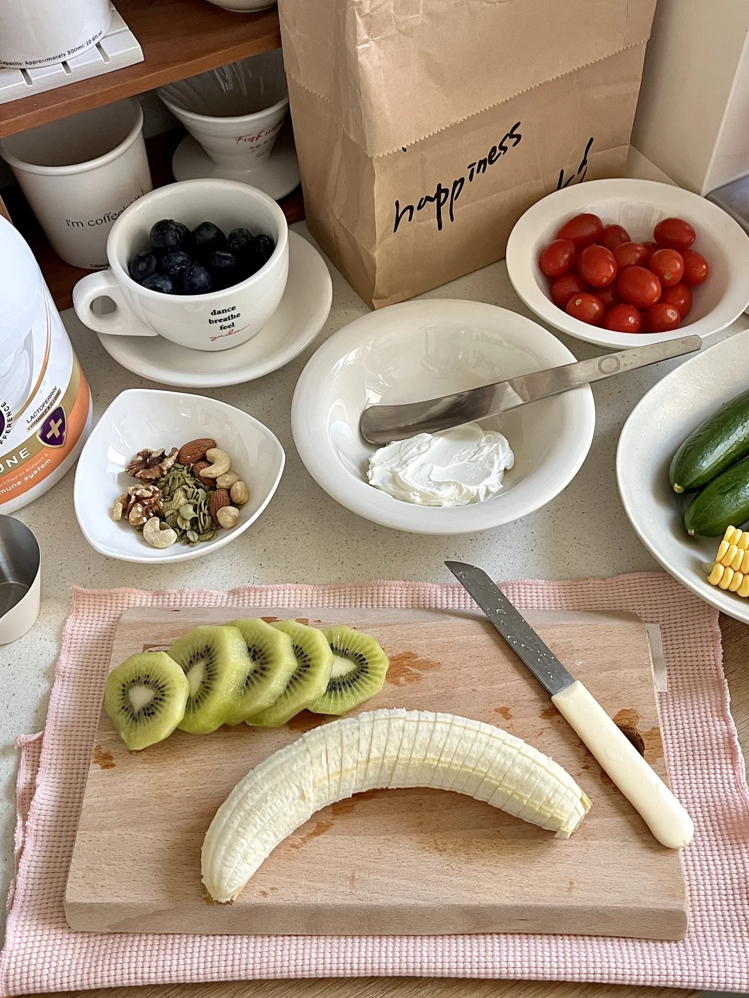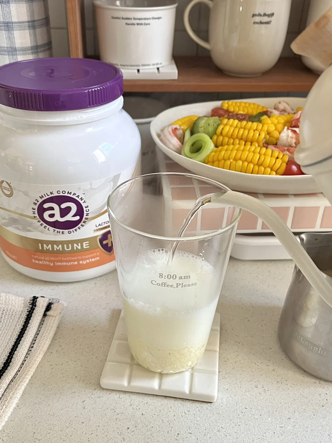 🏷今天早餐食物合集 玉米/鲜虾/小番茄/黄瓜/南瓜/蓝莓🫐 奇异果/香蕉/希腊酸奶/牛油果烘焙燕麦 🌰综合坚果🥣希腊酸奶/拿铁咖啡 - 近期感觉自己有些蛋白质缺失[哭惹R] 买了一些成人奶粉来极速补充自己[派对R] a2紫吨吨自护力成人奶粉[萌萌哒R] 是澳洲成人奶粉销售🔝品牌 奶源来自新西兰黄金奶源带[赞R][赞R][赞R] 每100g奶粉添加100mg乳铁蛋白 搭配可以提高自护因子的a2源乳 双效提升自护 - 还添加多维营养!维生素A/B6/C/D/锌 协同支持自护力 这个冬天暖暖的~ 关键还是低GI认证的,小糖人也可以喝 日常可以直接温水冲着喝🥛 也可以代替牛奶做一杯冬季热拿铁 -