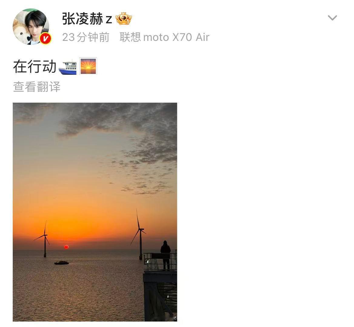 张凌赫晒海中落日张凌赫拍的海中落日 张凌赫拍的海中落日!张凌赫晒海中落日,照片中还有风力发电!并配文:“在行动⛴️🌅 ”。