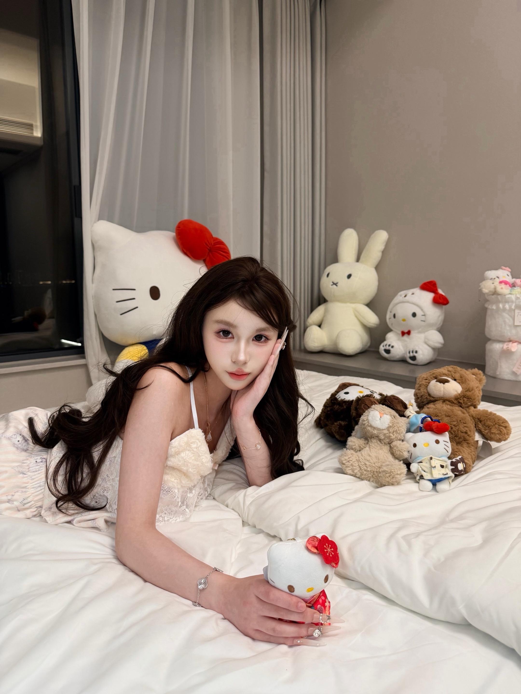 晚上走在街上,看见个少女,长得那叫一个好看。她脸上化着精致的淡妆,眼睛亮晶晶的。