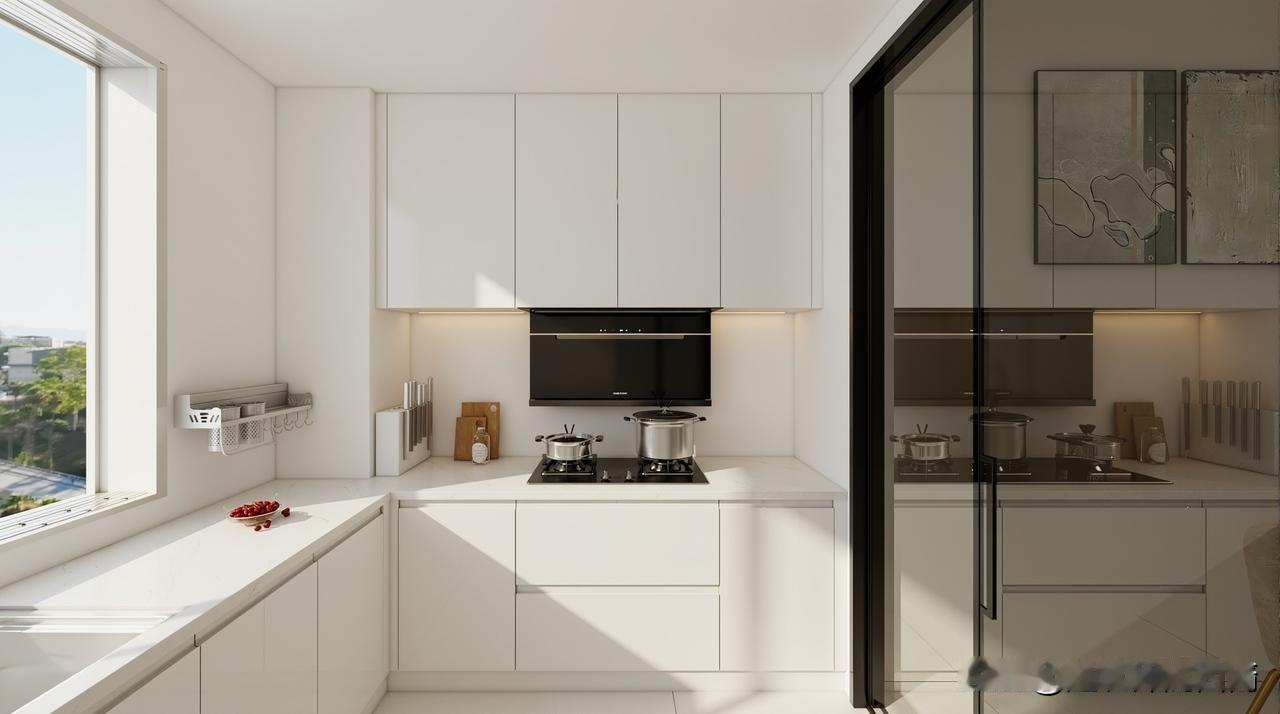 分享我这周有趣的事: 自建现代别墅之厨房室内设计分享:原则上就是简洁干净大气,与外立面的气质匹配。