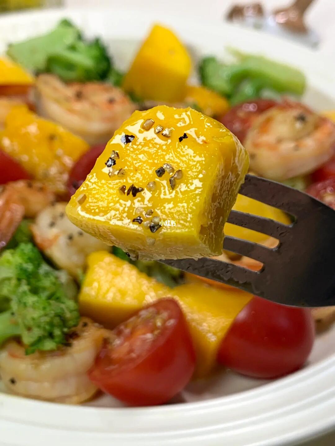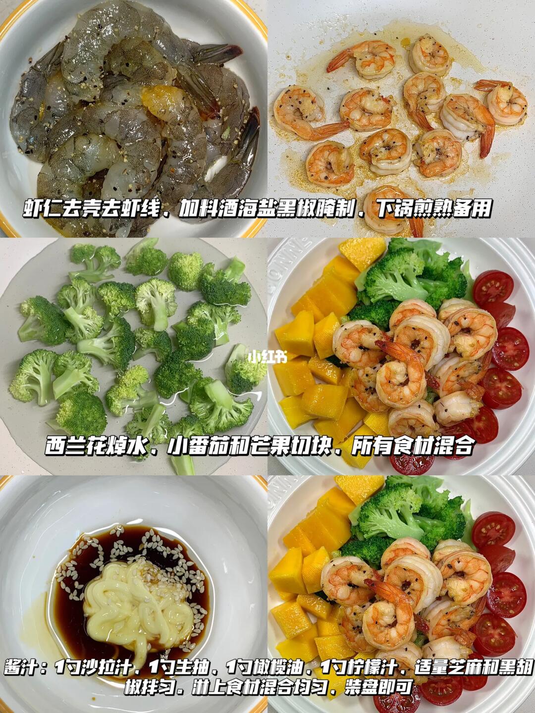 清清爽爽的芒果番茄沙拉🥗很适合夏日吃 低卡饱腹,营养也很全面!!真的好好次[萌萌哒R]姐妹们快去试试吧[派对R] [彩虹R]食材:虾仁、西兰花、小番茄、芒果 [飞吻R]做法:如图所示~