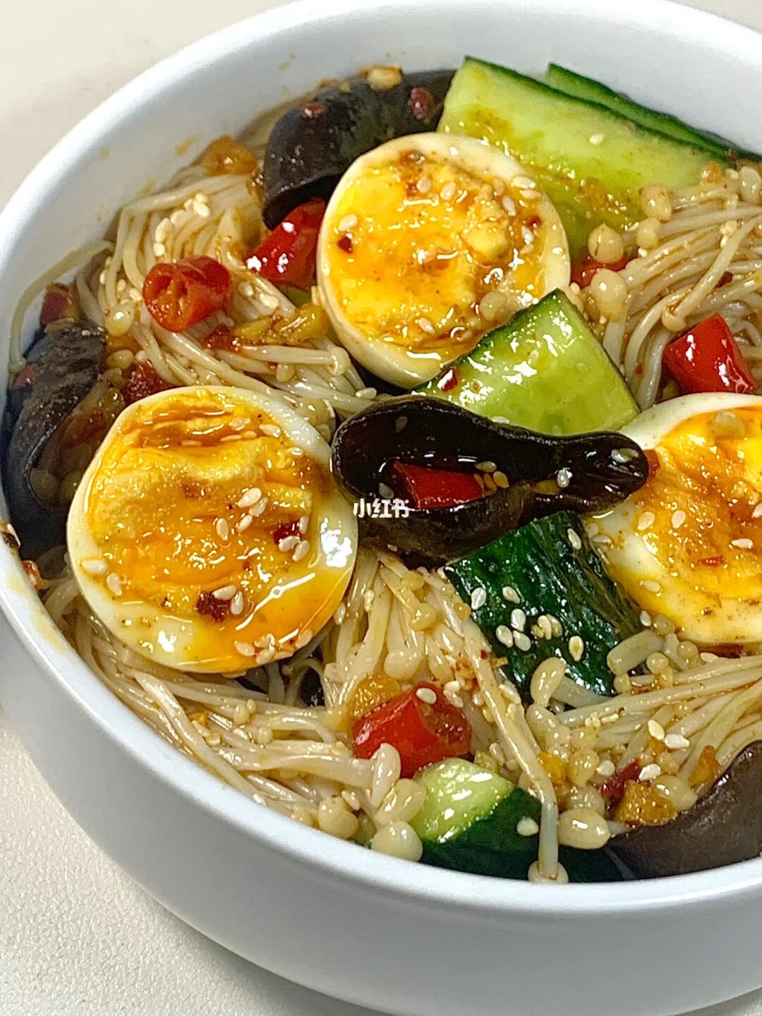 [氛围感R][氛围感R][氛围感R][氛围感R][氛围感R] 真的很喜欢吃这个金针菇鸡蛋拌黄瓜! 减脂期吃真的很适合吃这个! 低脂低卡没有什么负担! 姐妹们快来试试呀! 教程看图片即可🥣 [飞吻R]酱汁:碗中小米辣、蒜未白芝麻、辣椒面淋上少许热油,加两勺生抽➕一勺陈醋➕一勺蚝油少许凉白开拌匀即可✅