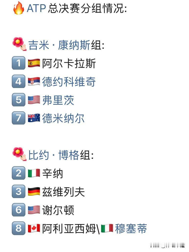 ATP总决赛签位揭晓,这比赛还没开始就火药味十足!吉米·康纳斯组里,阿尔卡拉斯和德约科维奇两位大佬同组,这简直是强强对决的预演。阿尔卡拉斯年轻有冲劲,德约科维奇经验老道,两人要是碰上,那比赛肯定精彩到爆。还有弗里茨和德米纳尔也不是吃素的,都有搅局的实力。 比约·博格组同样不简单,辛纳和兹维列夫都是实力战将。谢尔顿和阿利亚西姆或穆塞蒂也都不容小觑。感觉这届ATP总决赛会是一场激烈的厮杀,谁能在各自小组突围,最终捧起奖杯,太让人期待了! 网球年度总决赛 网球巡回赛赛程 阿尔卡拉斯网球 网球保利尼 罗马网球大师赛 阿尔卡拉斯法网