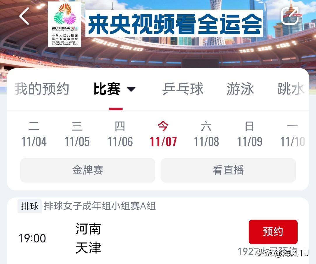 全运会天津女排对阵河南女排直播 11.07晚上七点全运会女排小组赛,天津女排对阵河南女排。 央视频和CCTV16到时将现场直播本场比赛。