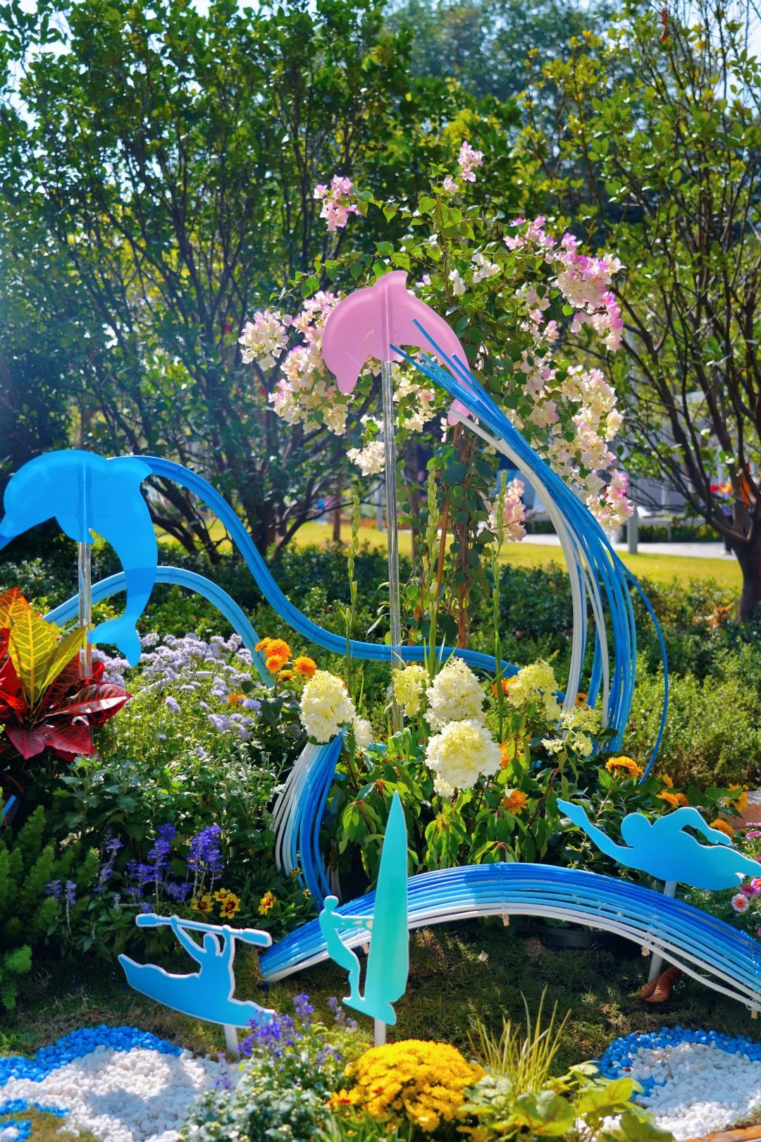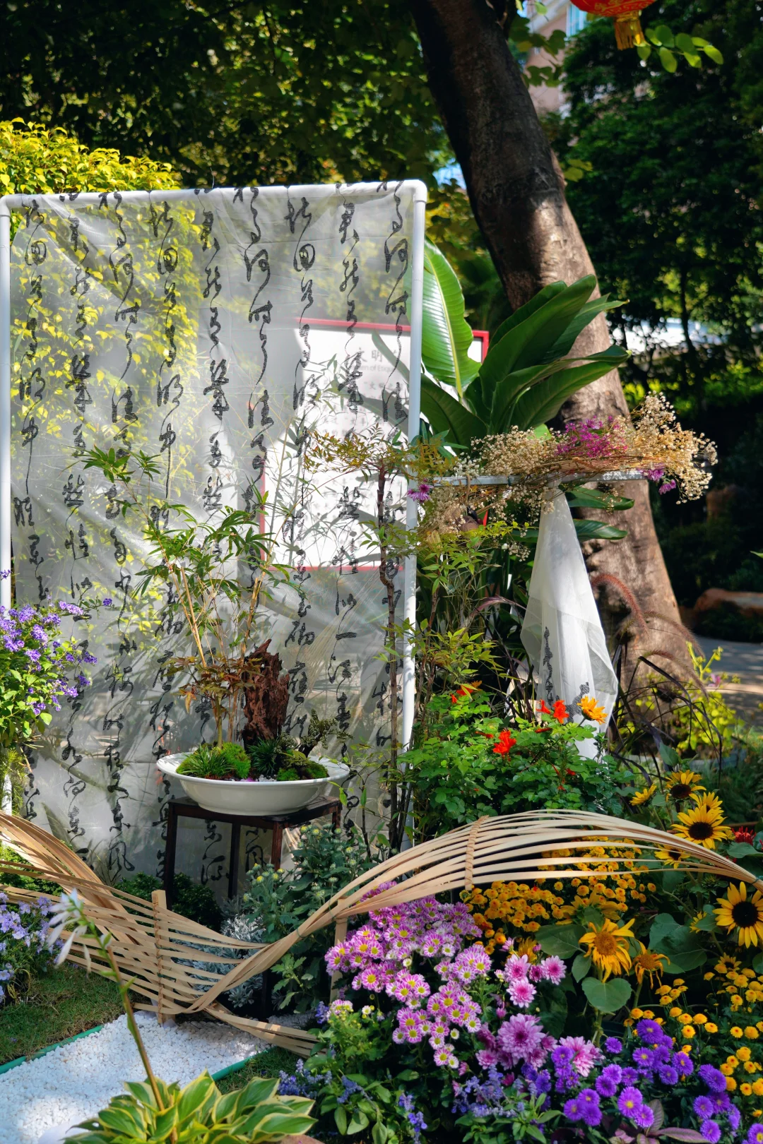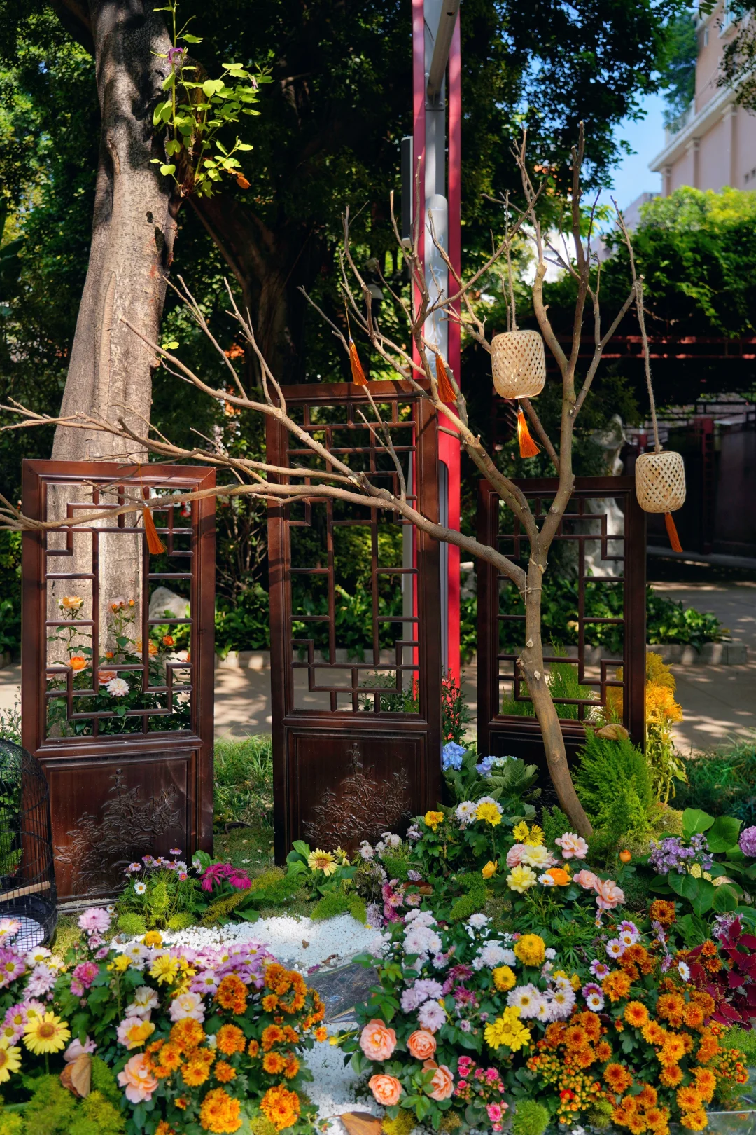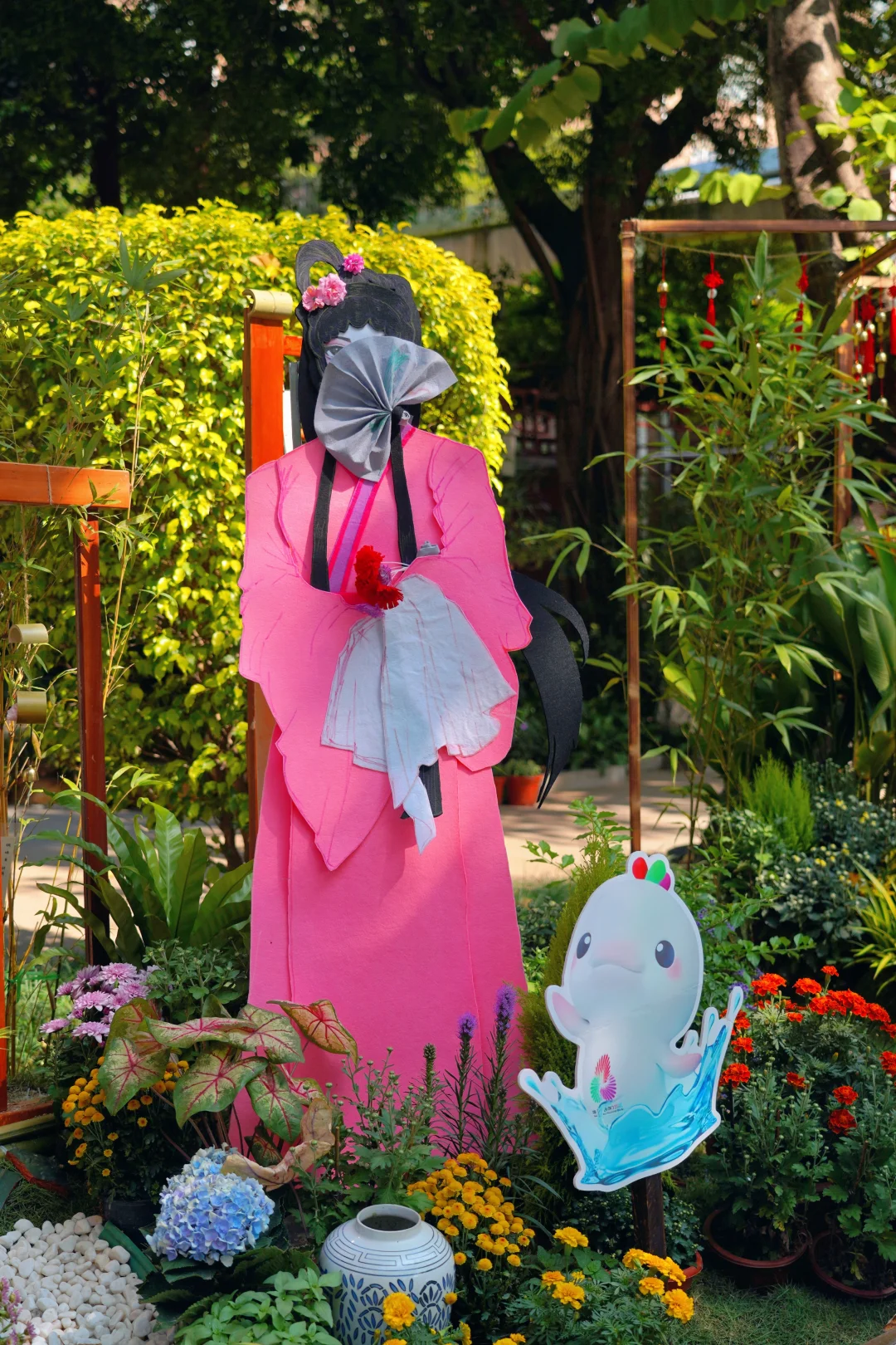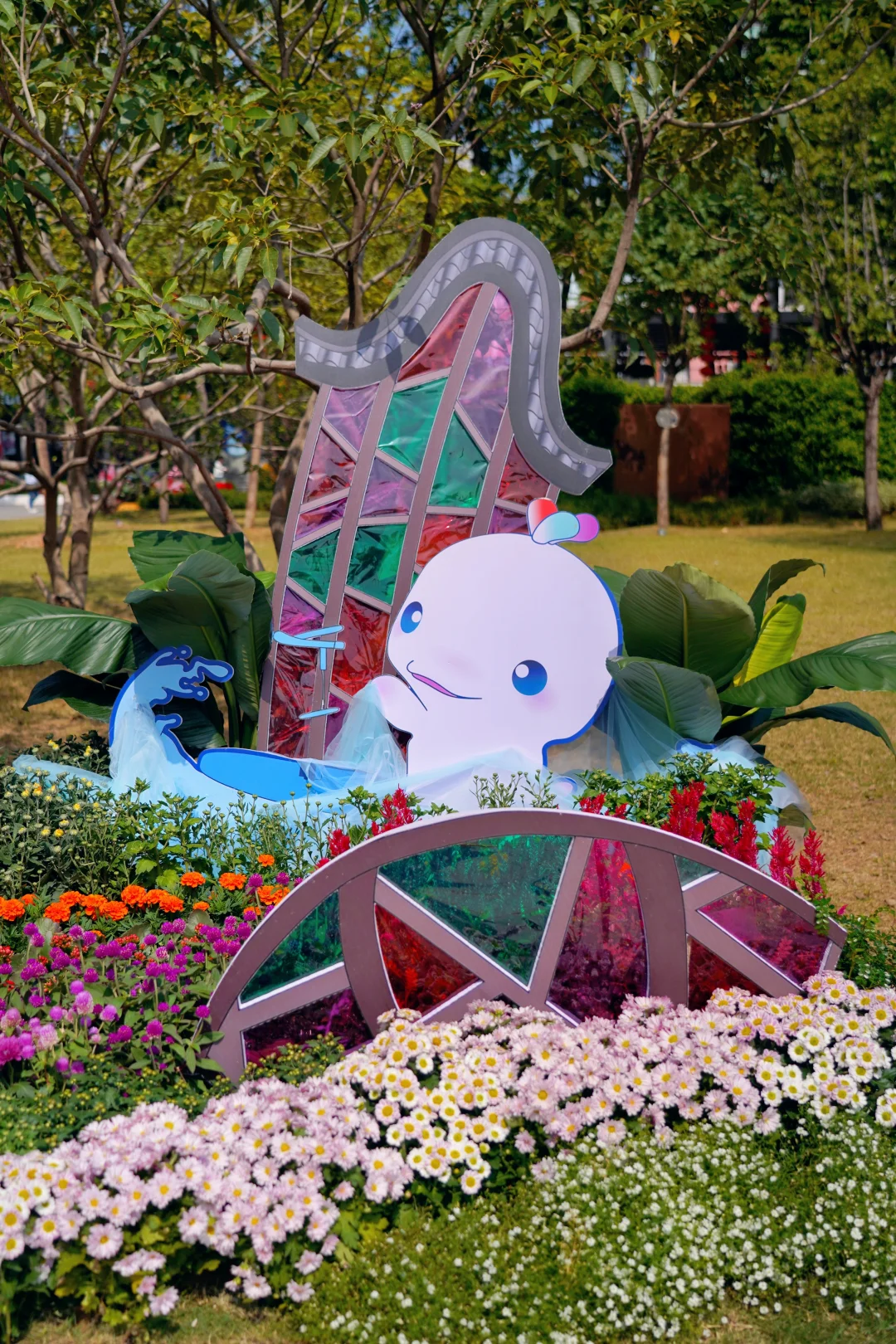 公园内中秋灯会的一些布展还保留着,搭建的一些菊花架还未开花
