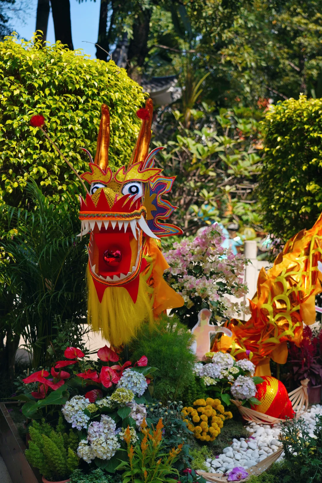 小景观已经差不多搭建完成,不仅有醒狮、粤剧冠等西关文化元素,也应景的增加了全运会的元素