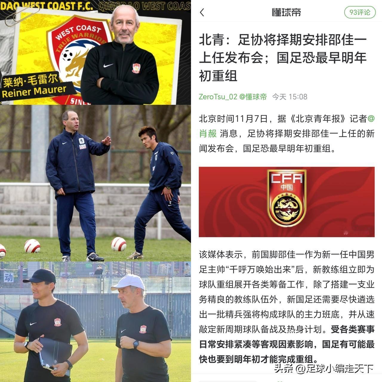 看这意思国足11月份国际比赛日又“躺平”休息了?想看国足比赛得明年3月份了。 我觉得国足选邵佳一,主要还是看上了德国助教毛雷尔,以他得履历当国足主帅都没问题。 希望邵帅和他的团队可以利用在欧洲的资源,多约些先进的强队打热身赛。别老是再约不如自己得对手了。多打些比自己强的对手才能更快提高。 也希望佳一能大胆的启用年轻队员,抛开人情世故。这样国足的未来还是有希望的,要是继续使用过多的老将,那还是换汤不换药。 佳一需要组建新的国家队先从U17、U18、U20、U23年龄段选出年轻球员和规划球员为主,需要魔鬼训练方式提高年轻球员意识。前往德国踢高强度比赛节奏磨合阵容。目标2027年亚洲杯。中国队加油!