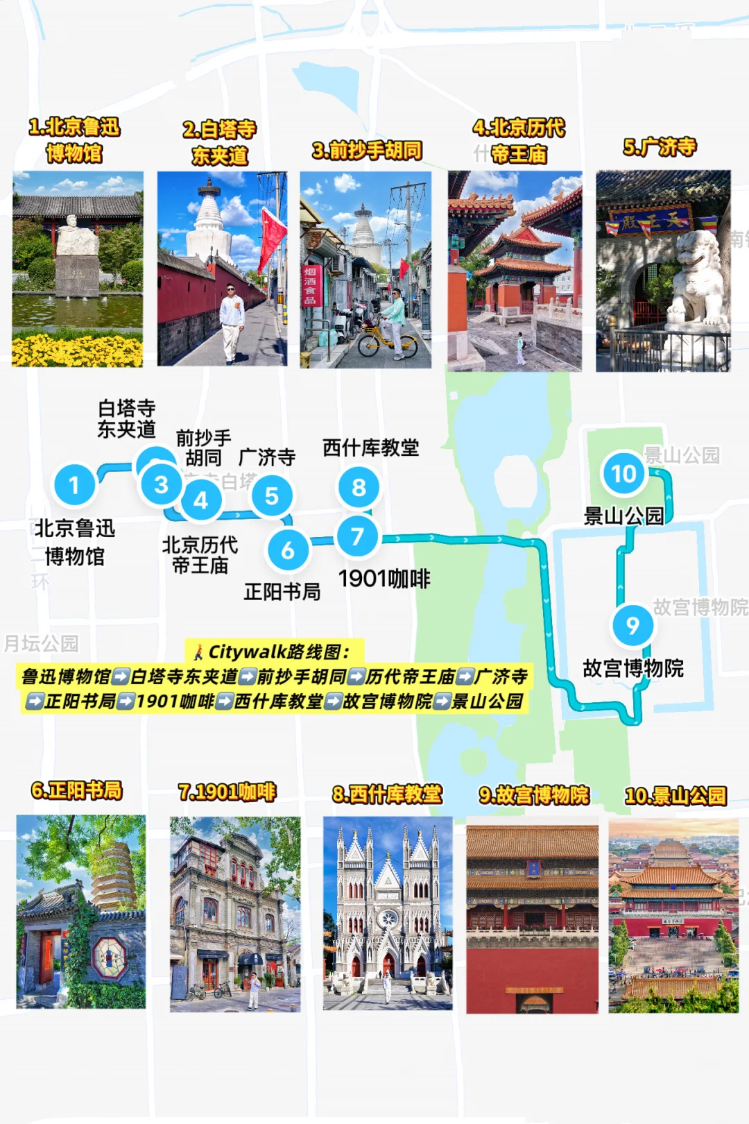 鲁迅博物馆➡️白塔寺东夹道➡️前抄手胡同➡️历代帝王庙➡️广济寺➡️正阳书局➡️1901咖啡➡️西什库教堂➡️故宫博物院➡️景山公园
